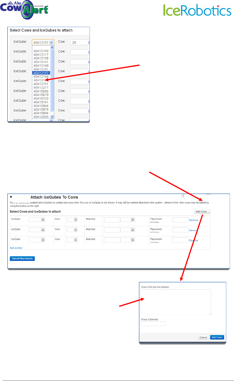 A form will open that allows you to select the IceQube number, the cow that it is to be attached to