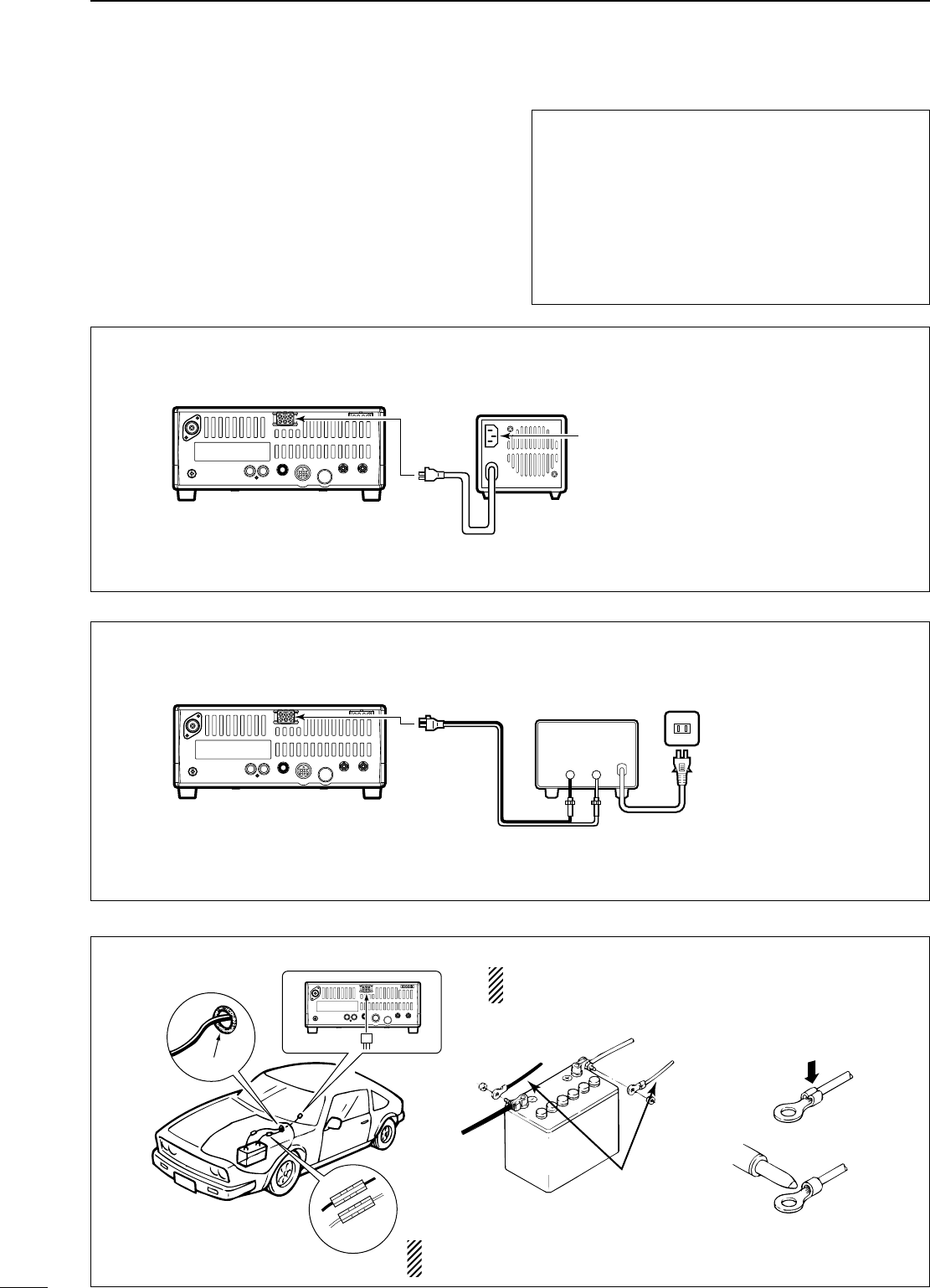 V battery, to the [DC13.8V] jack on the transceiver