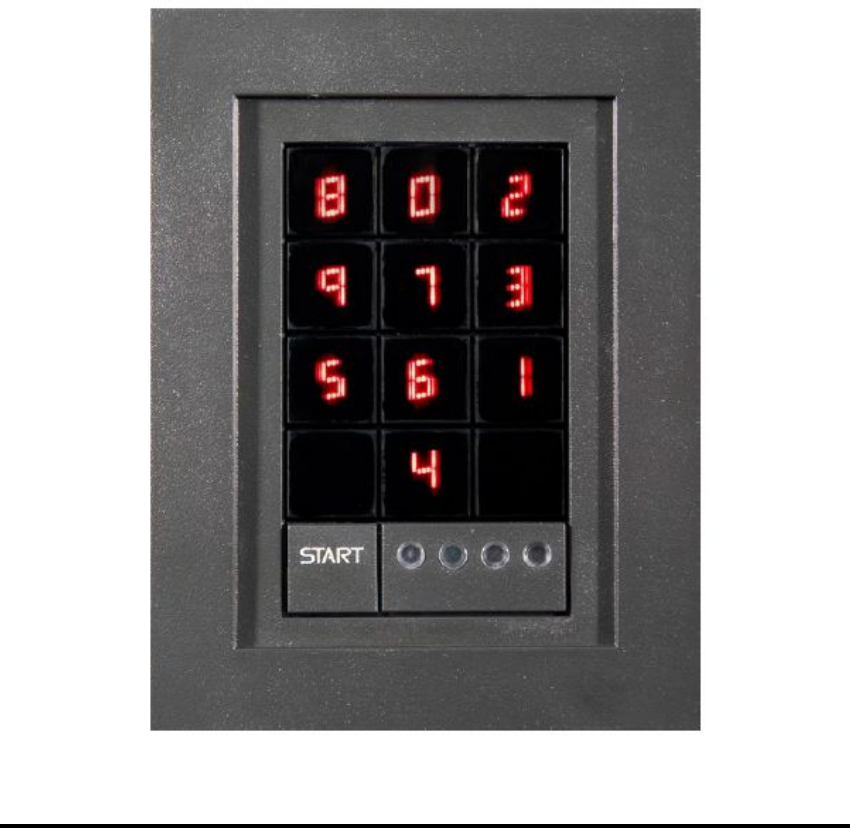 Randomly displayed keypad pin entry for additional security. The reader can interface with an access