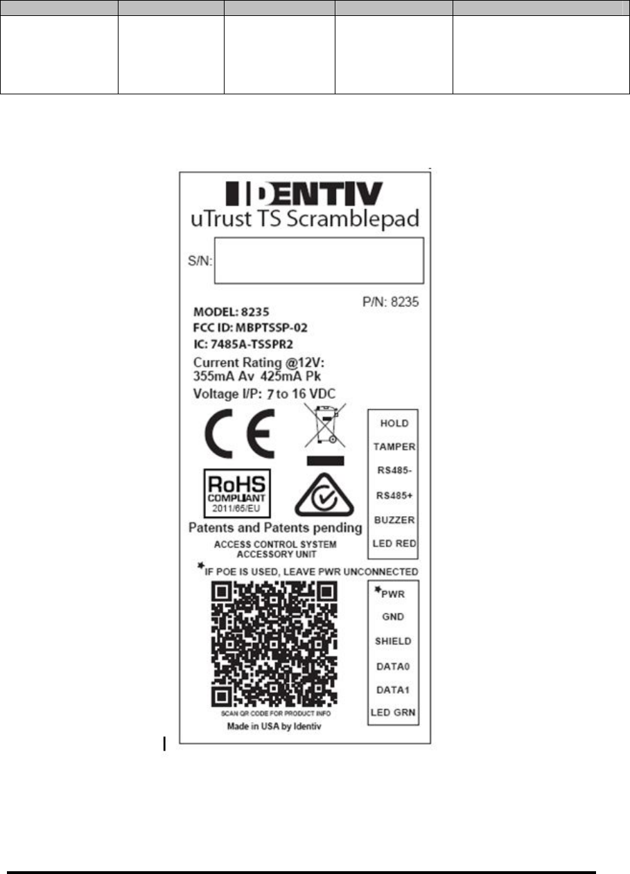 Identiv, Inc uTrust TS Scramblepad Users Manual