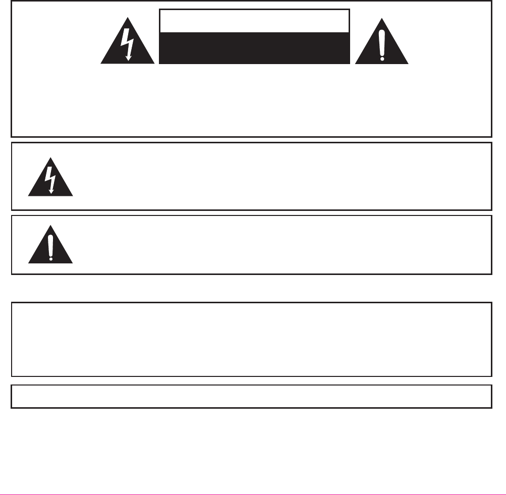 CAUTION: TO REDUCE THE RISK OF ELECTRIC SHOCK, DO NOT REMOVE COVER (OR BACK).