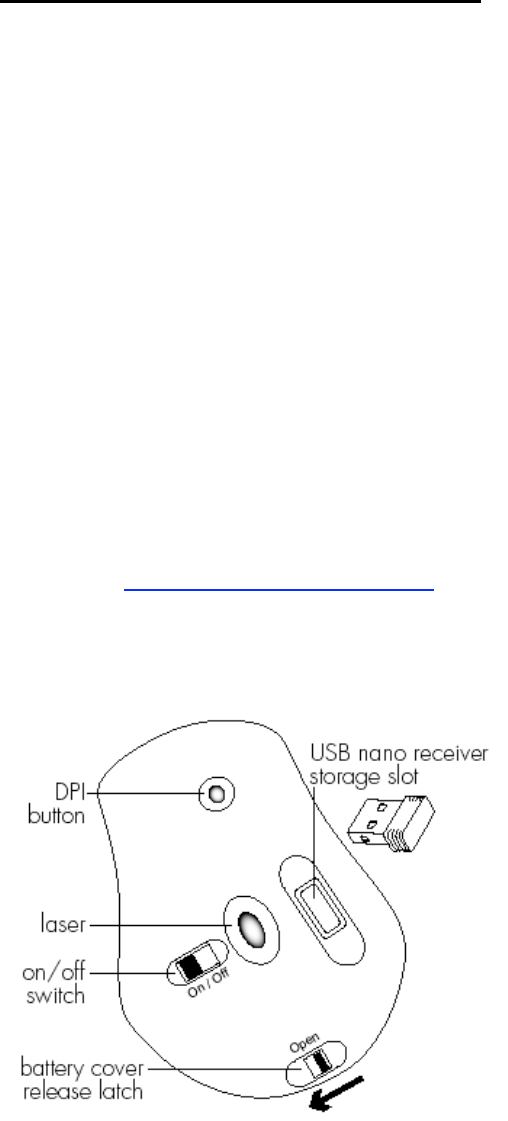 • Store the USB nano receiver in the storage slot in the bottom of the