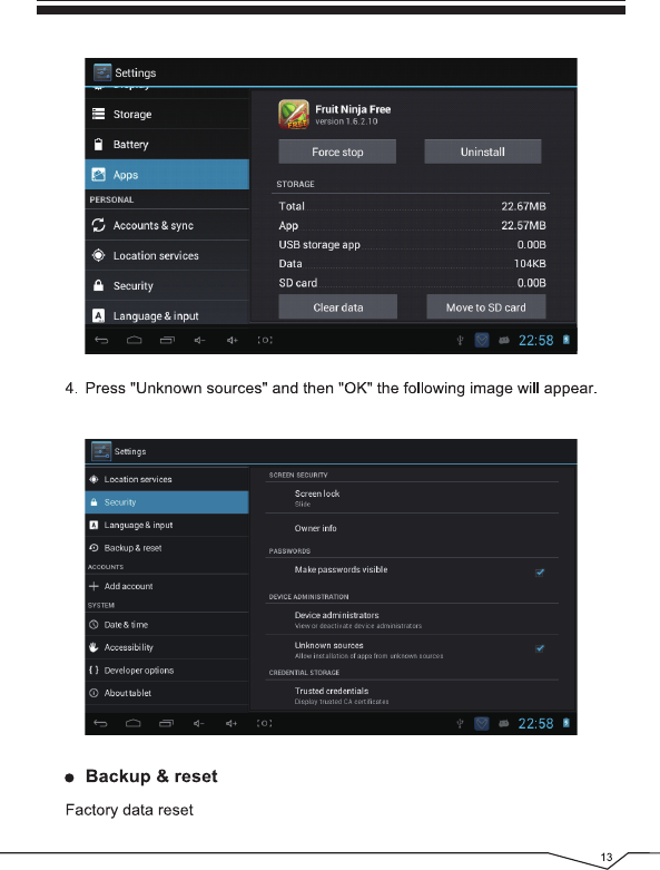 object (such as a paperclip) to press RESET button, the tablet will force to reset.