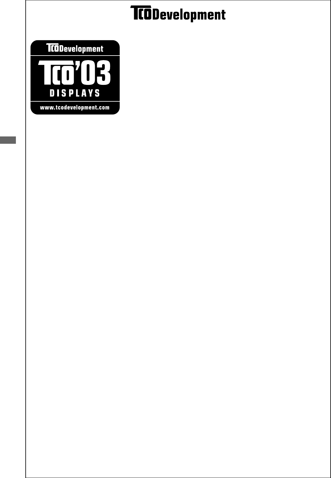 The display you have just purchased carries the TCO’03 Displays