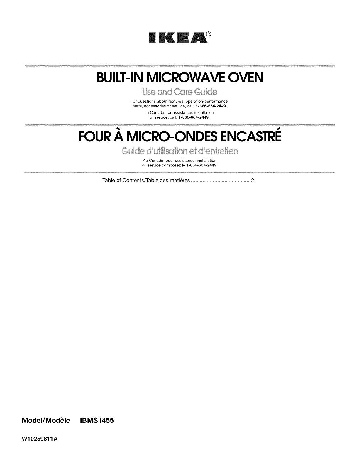 Ikea IBMS1455WS0 1011074L User Manual BUILT IN MICROWAVE Manuals And Guides