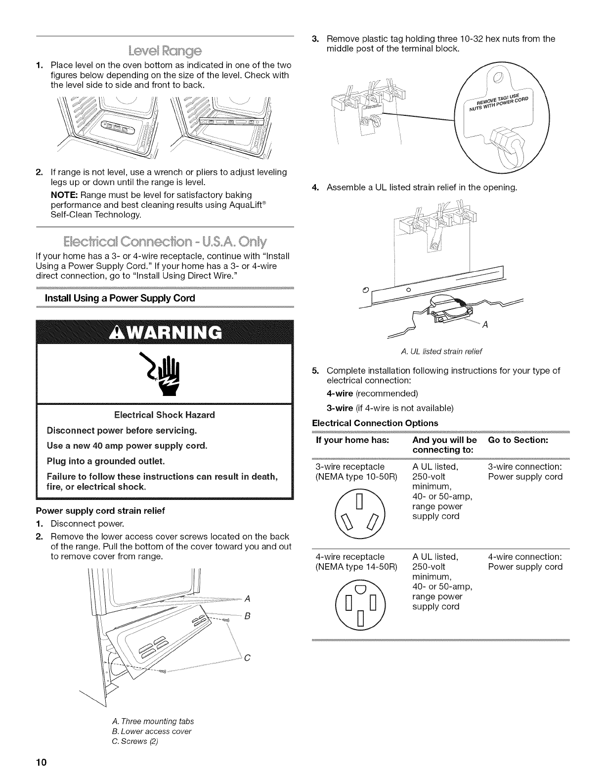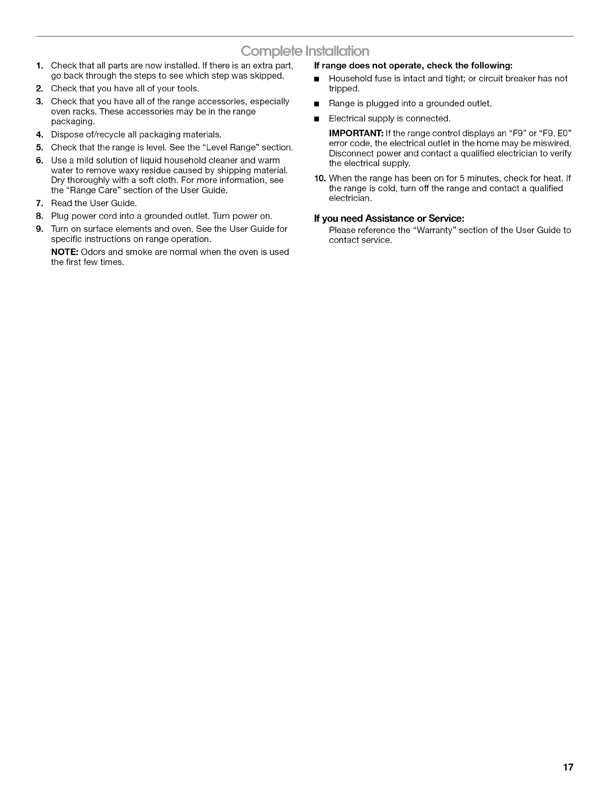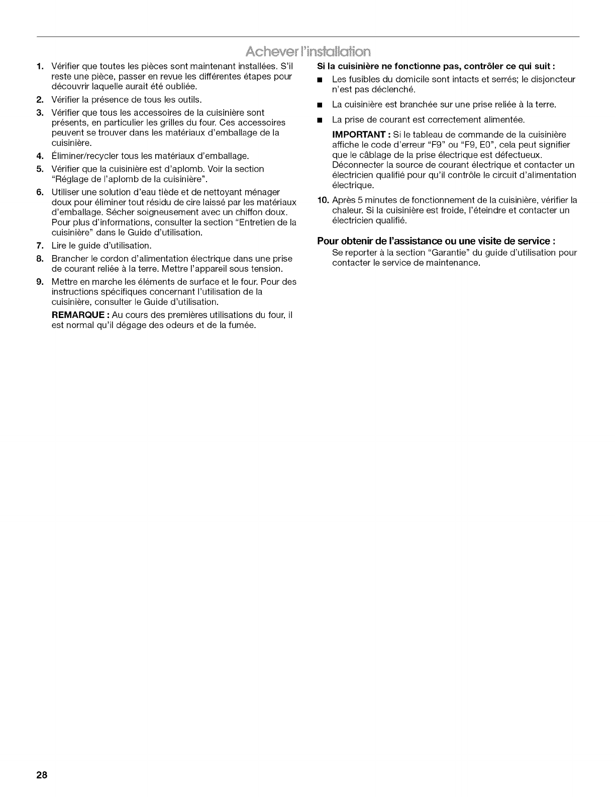 5. Verifier que la cuisiniere est d'aplomb. Voir la section