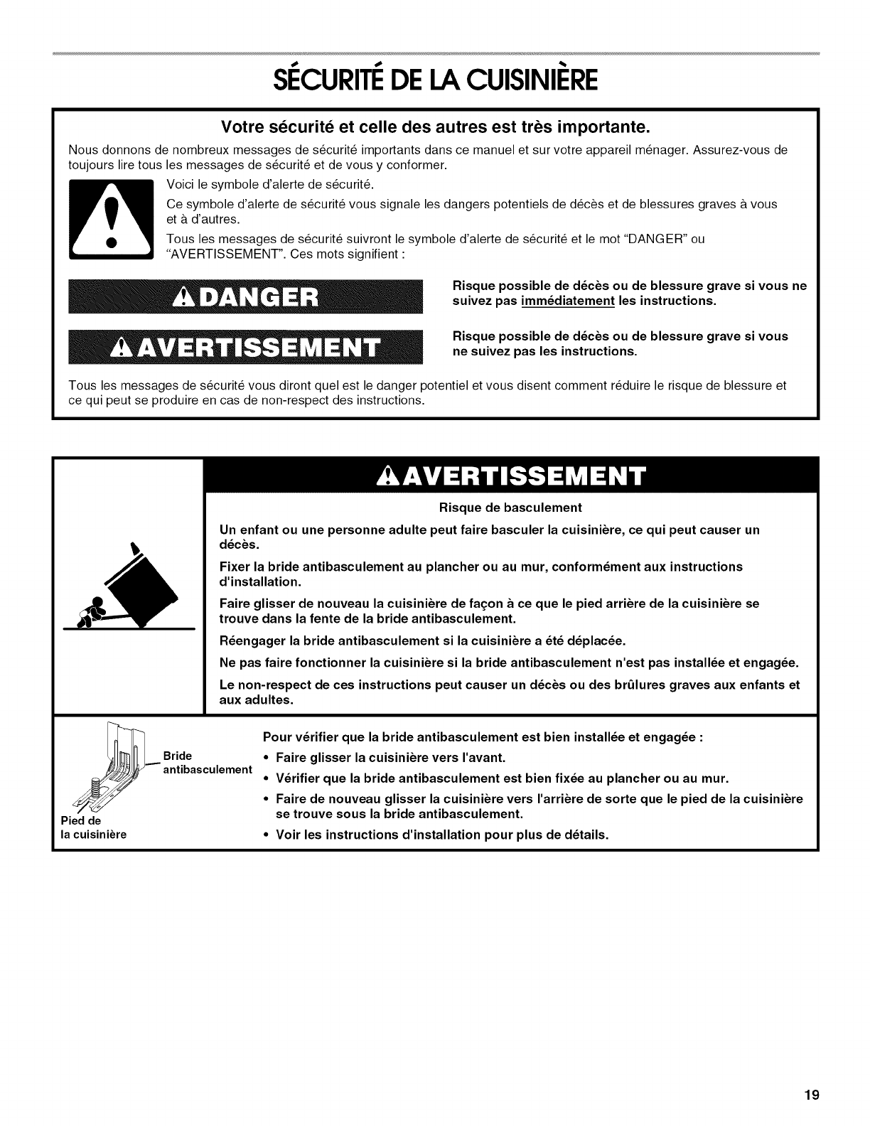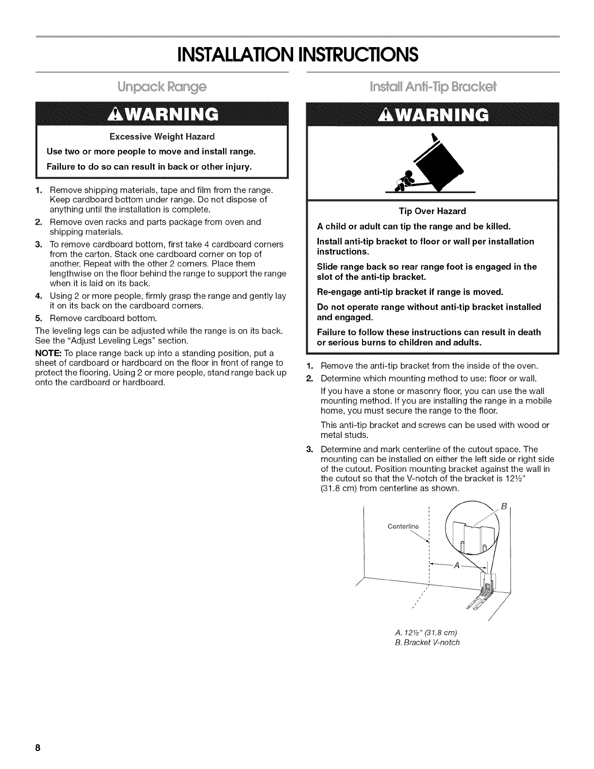•Look for the anti-tip bracket securely attached to floor or wall.