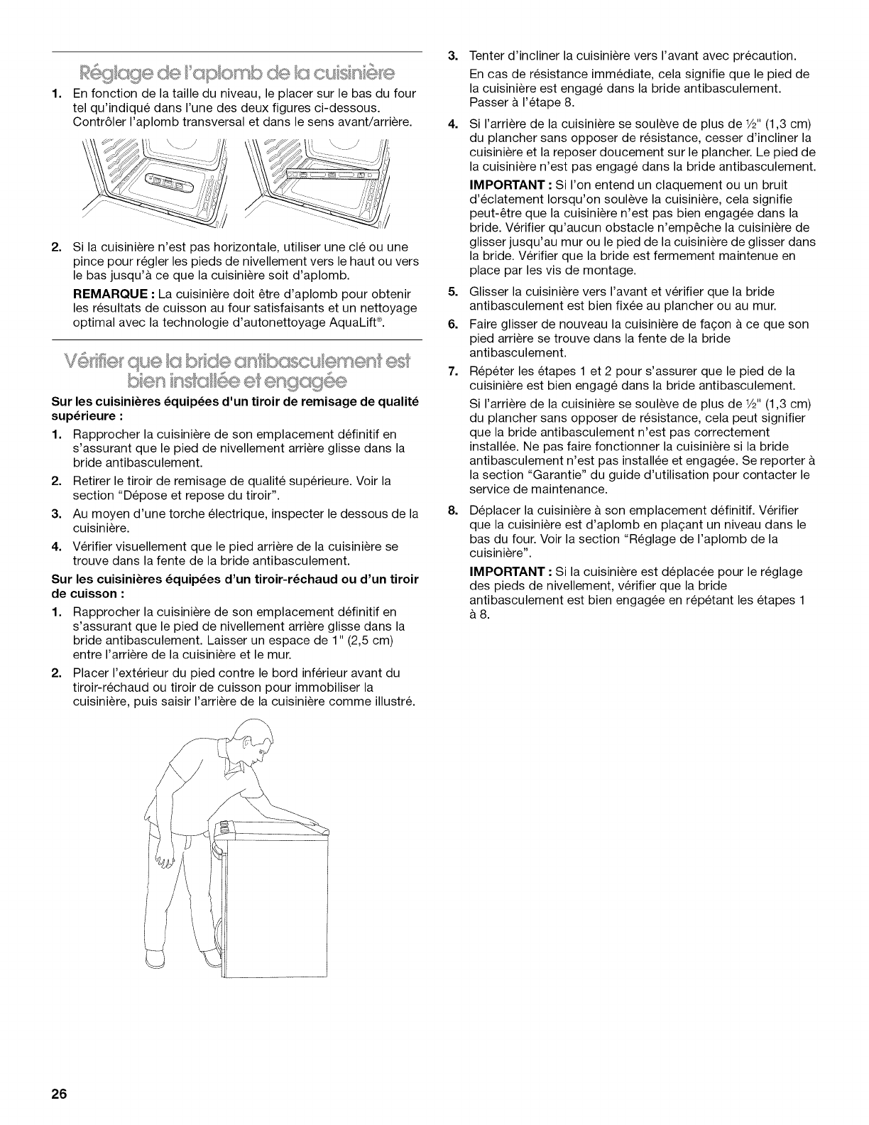 Reglage de I'aplomb de la cuisiniere ......................................... 26