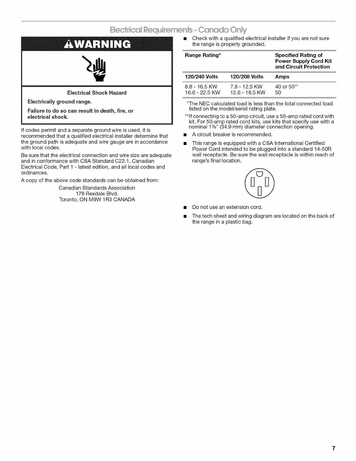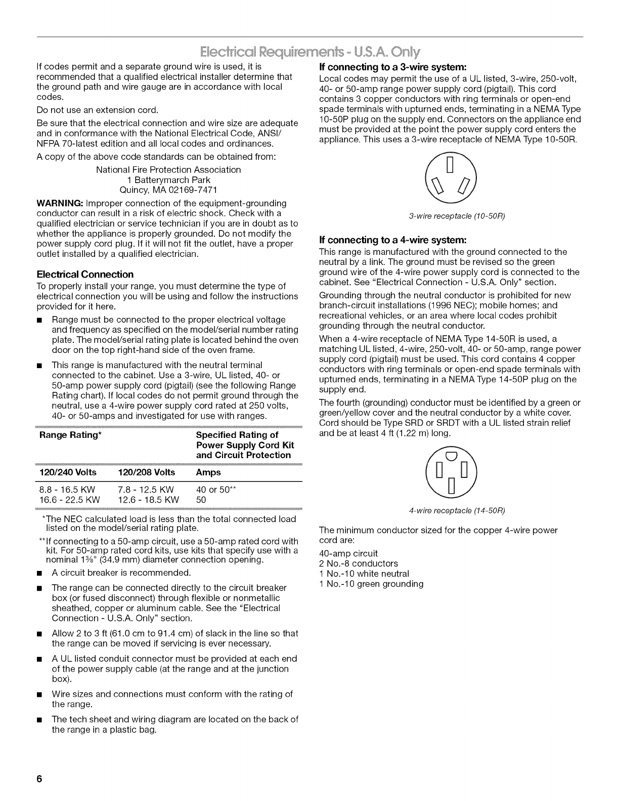 Electrical Requirements - U.S.A. Only ......................................... 6