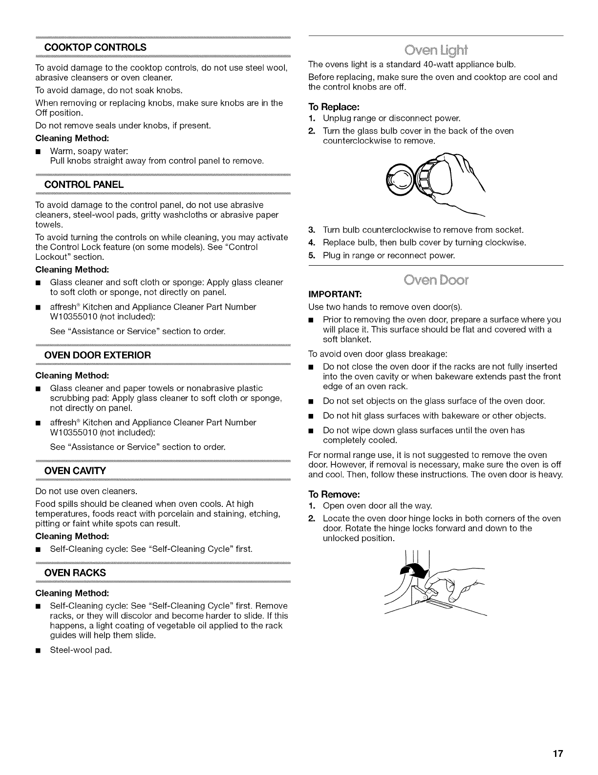 Oven Light .................................................................................. 17