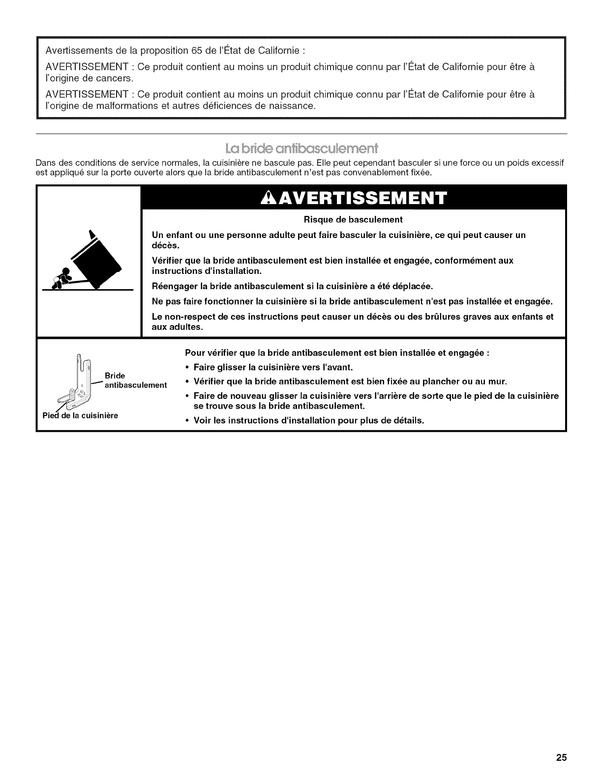 La bride antibasculement ........................................................... 25