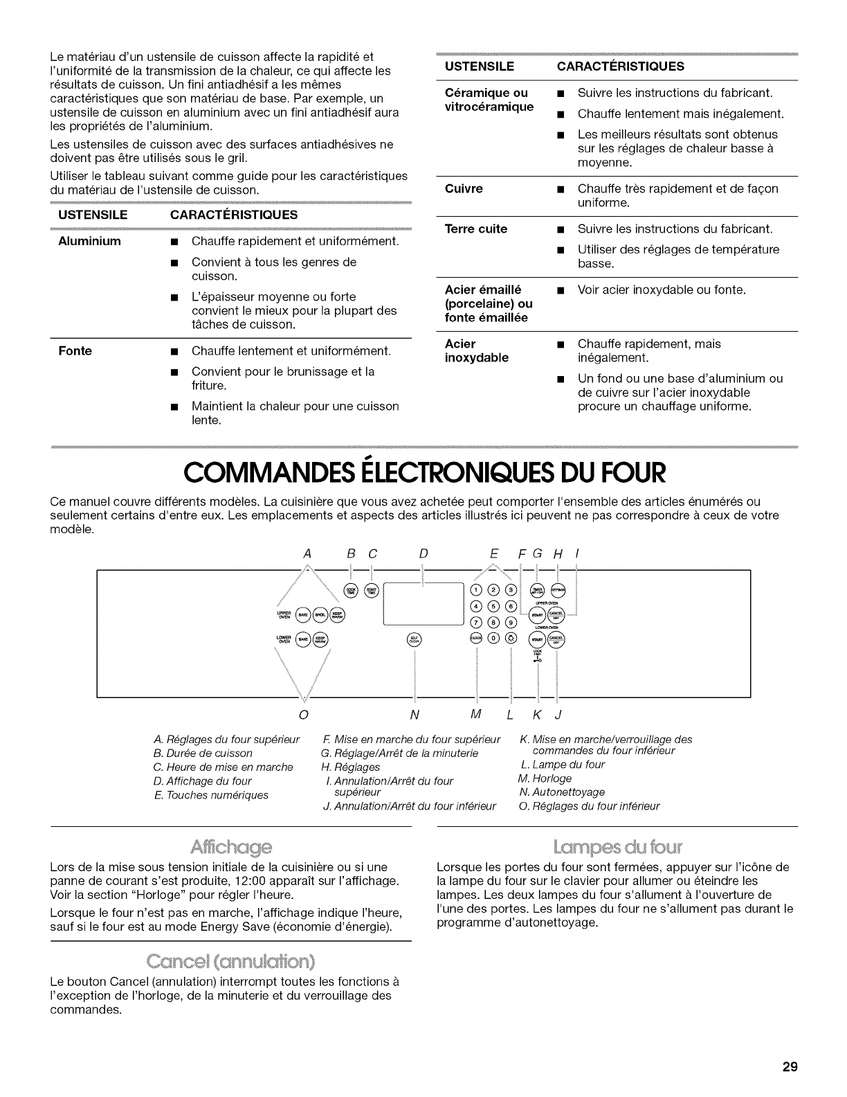 COMMANDES I_LECTRONIQUES DU FOUR ............................ 29