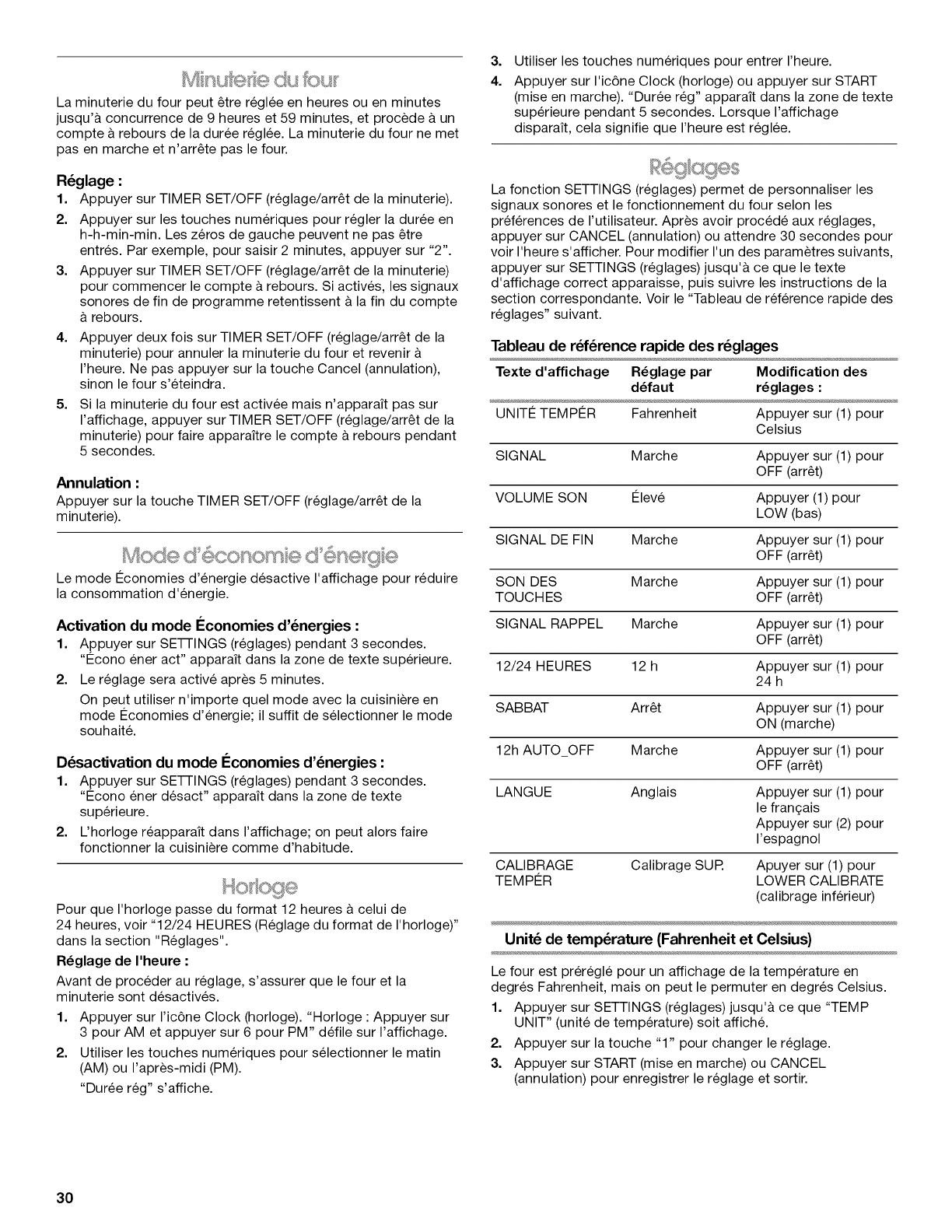 Minuterie du four ........................................................................ 30