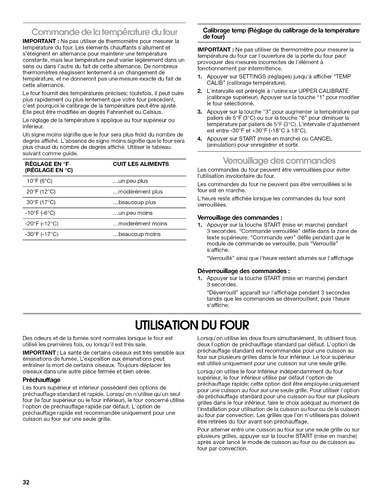 UTILISATION DU FOUR ............................................................... 32