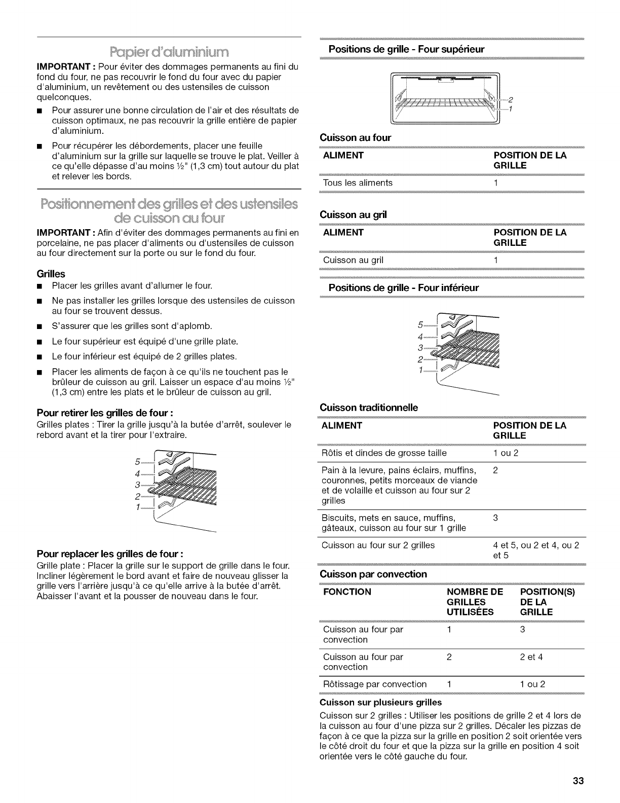 Positionnement des grilles et des ustensiles