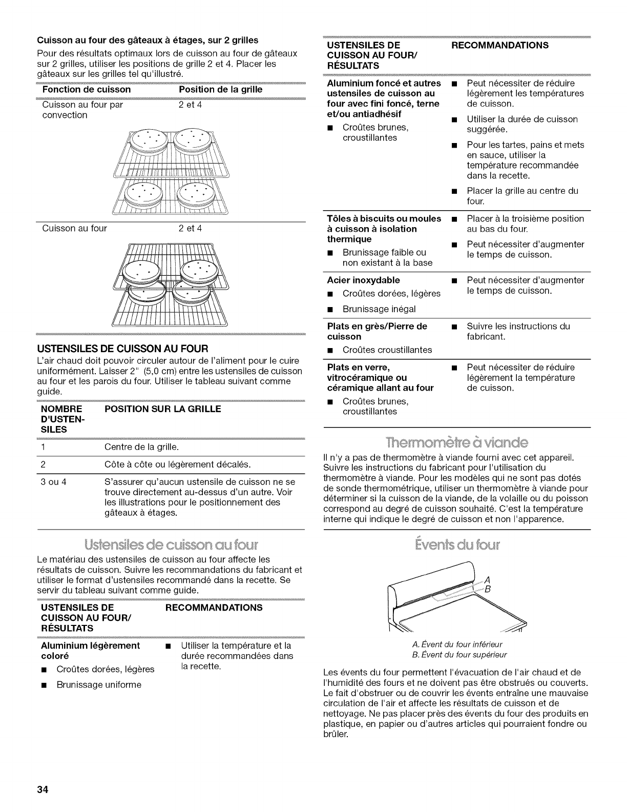 Ustensiles de cuisson au four .................................................... 34