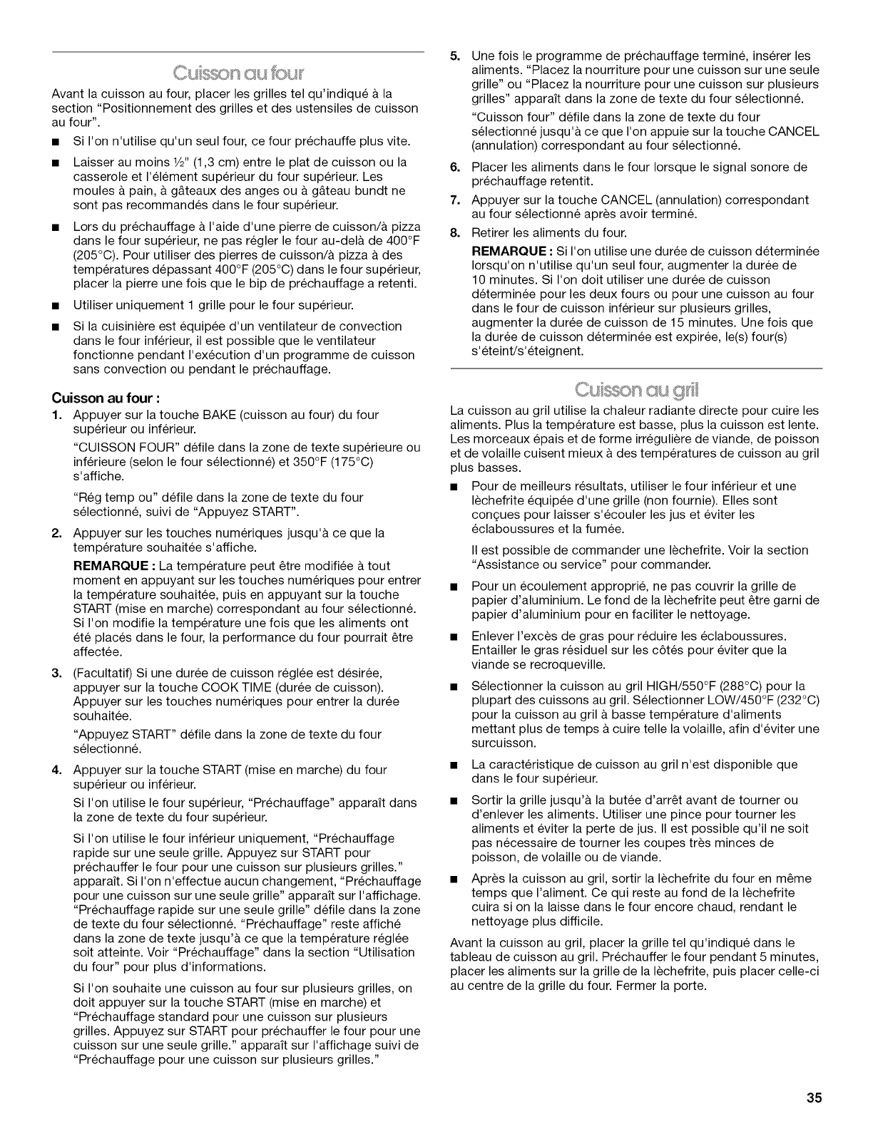 Cuisson au gril ............................................................................ 35