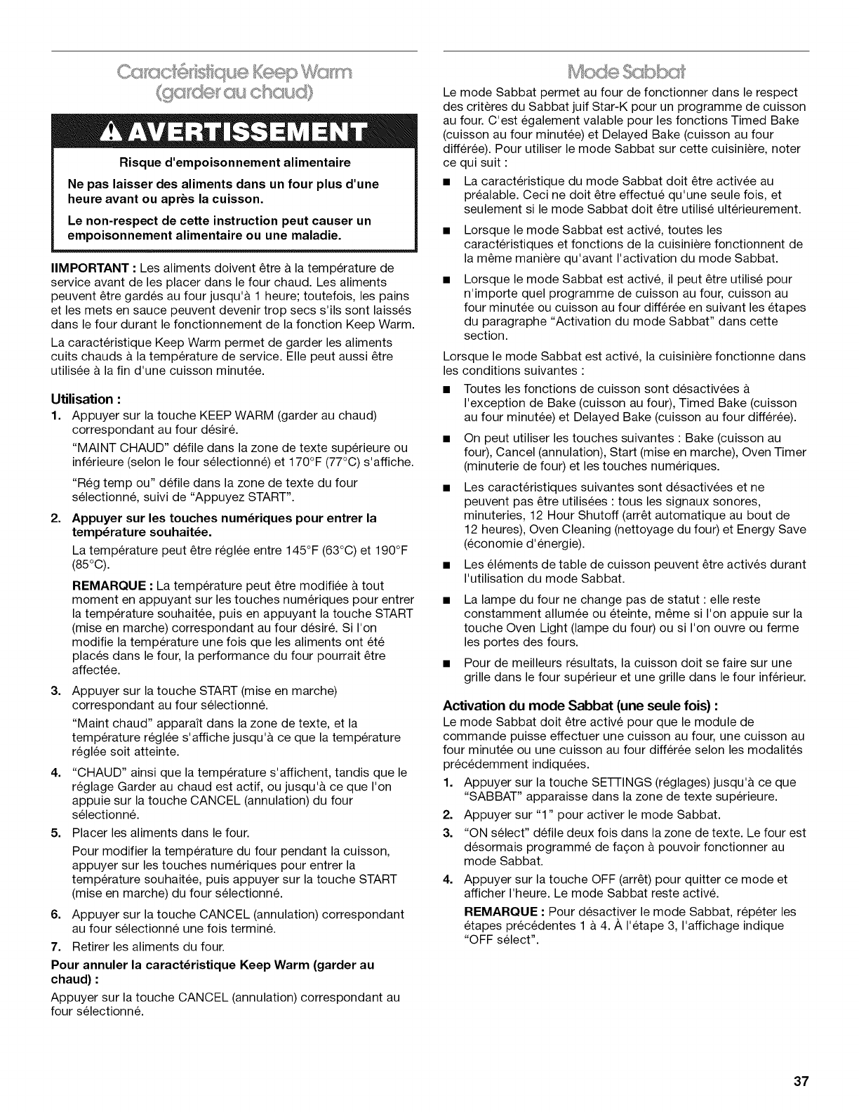 Caracteristique Keep Warm (garder au chaud) ......................... 37