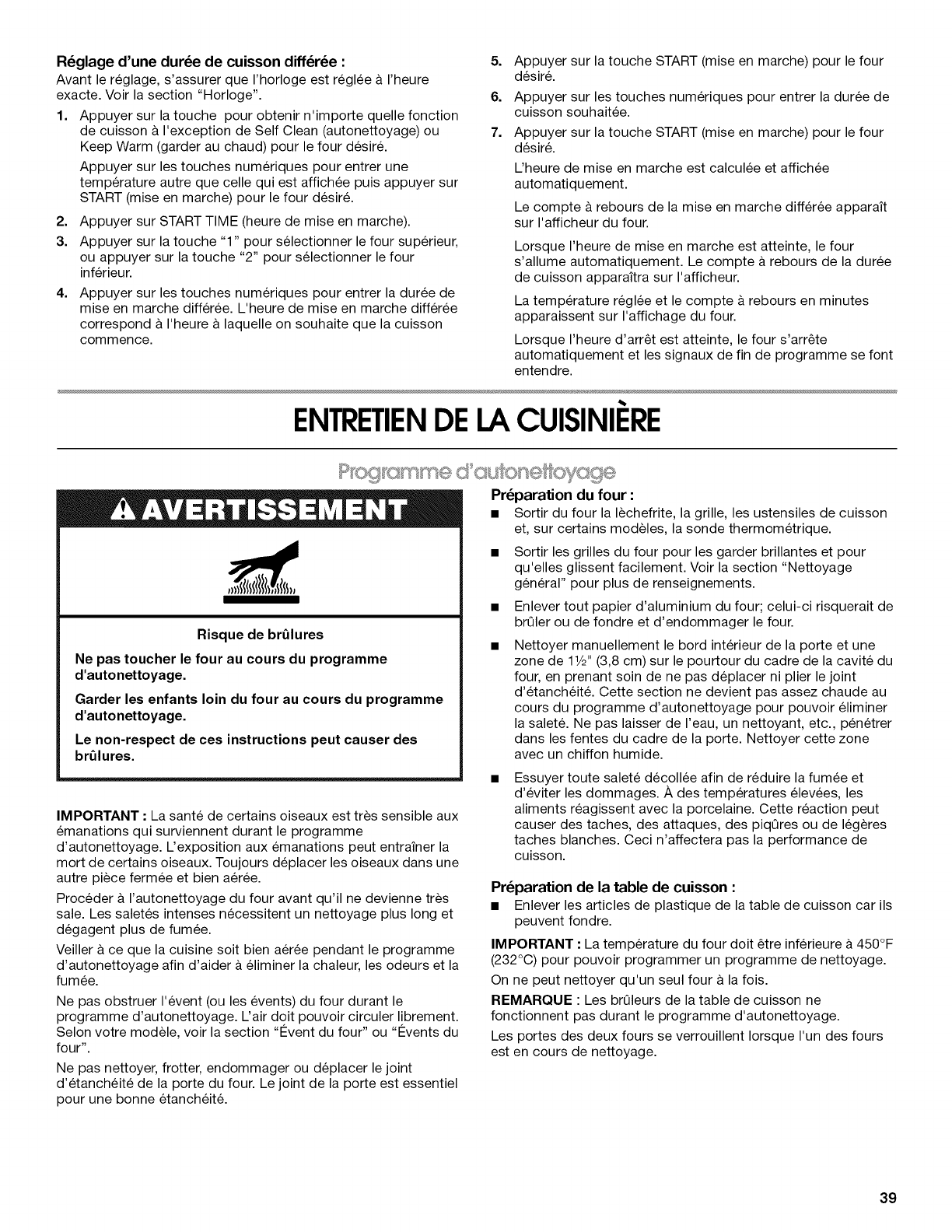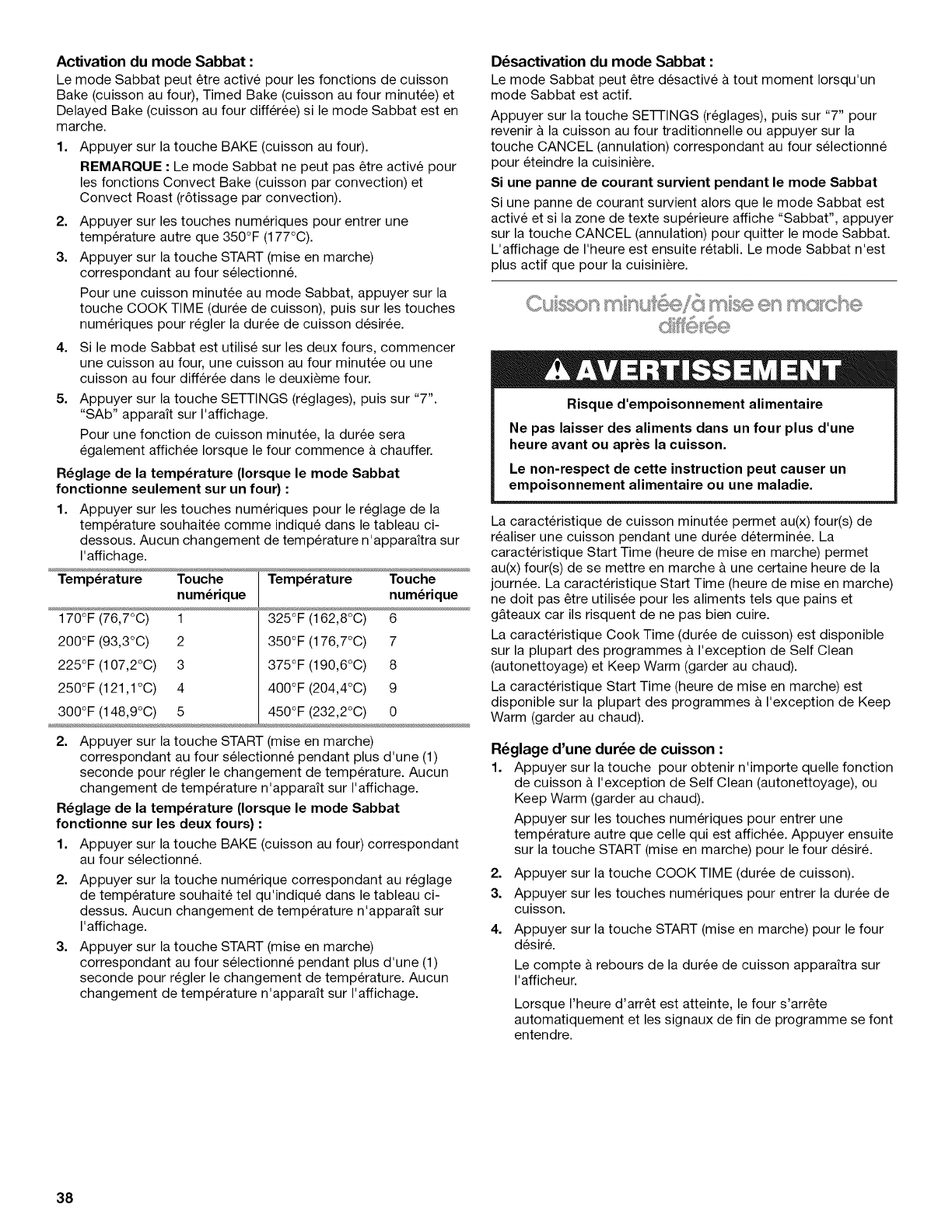 Cuisson minutee/& mise en marche differ6e ............................. 38