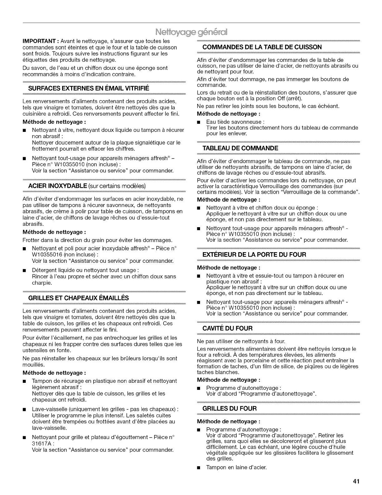 AFFRESH est une marque de commerce de Whirlpool, U.S.A. utilisee sous autorisation