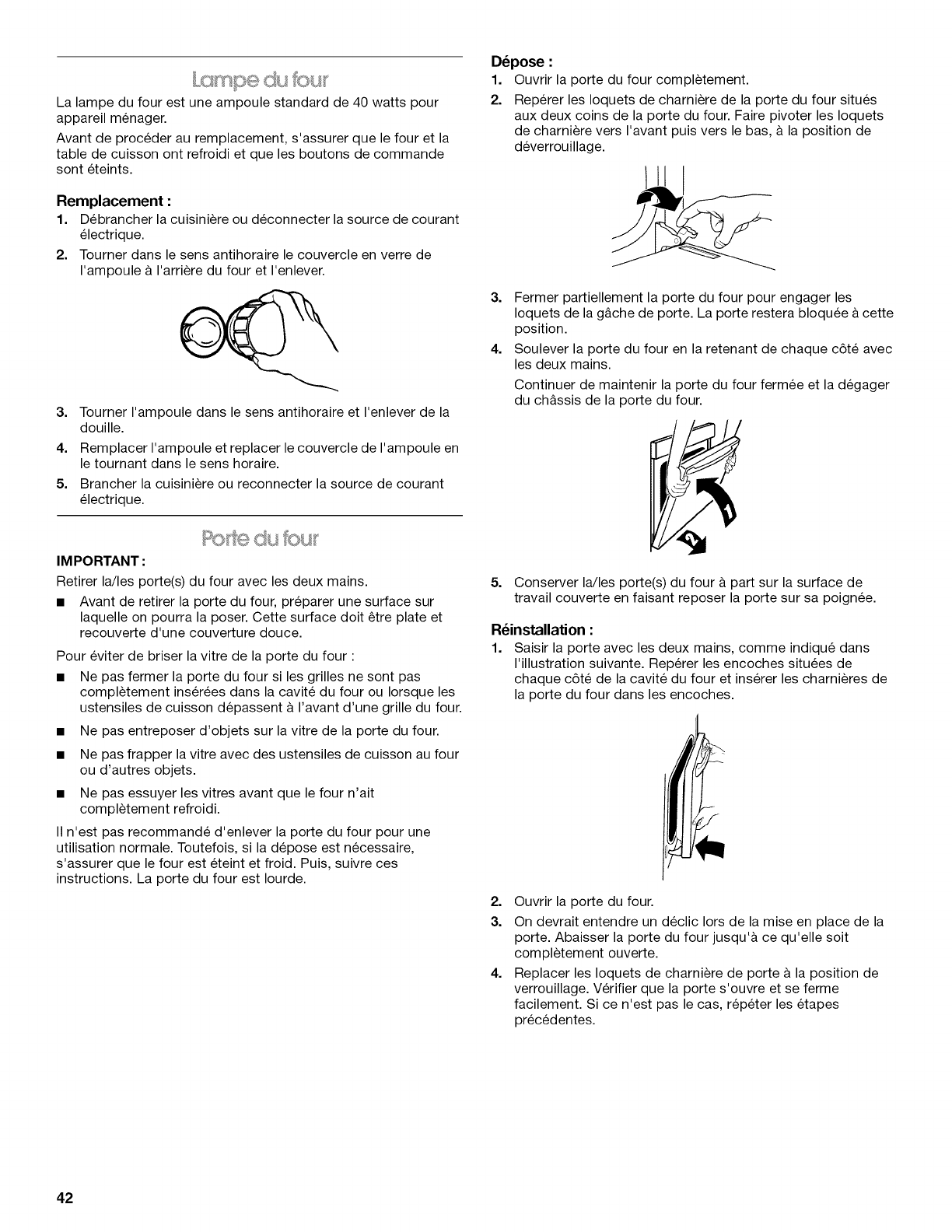 • L'enlevement et la reinstallation du gros appareil menager si celui-ci est installe dans un endroit inaccessible ou n'est pas installe