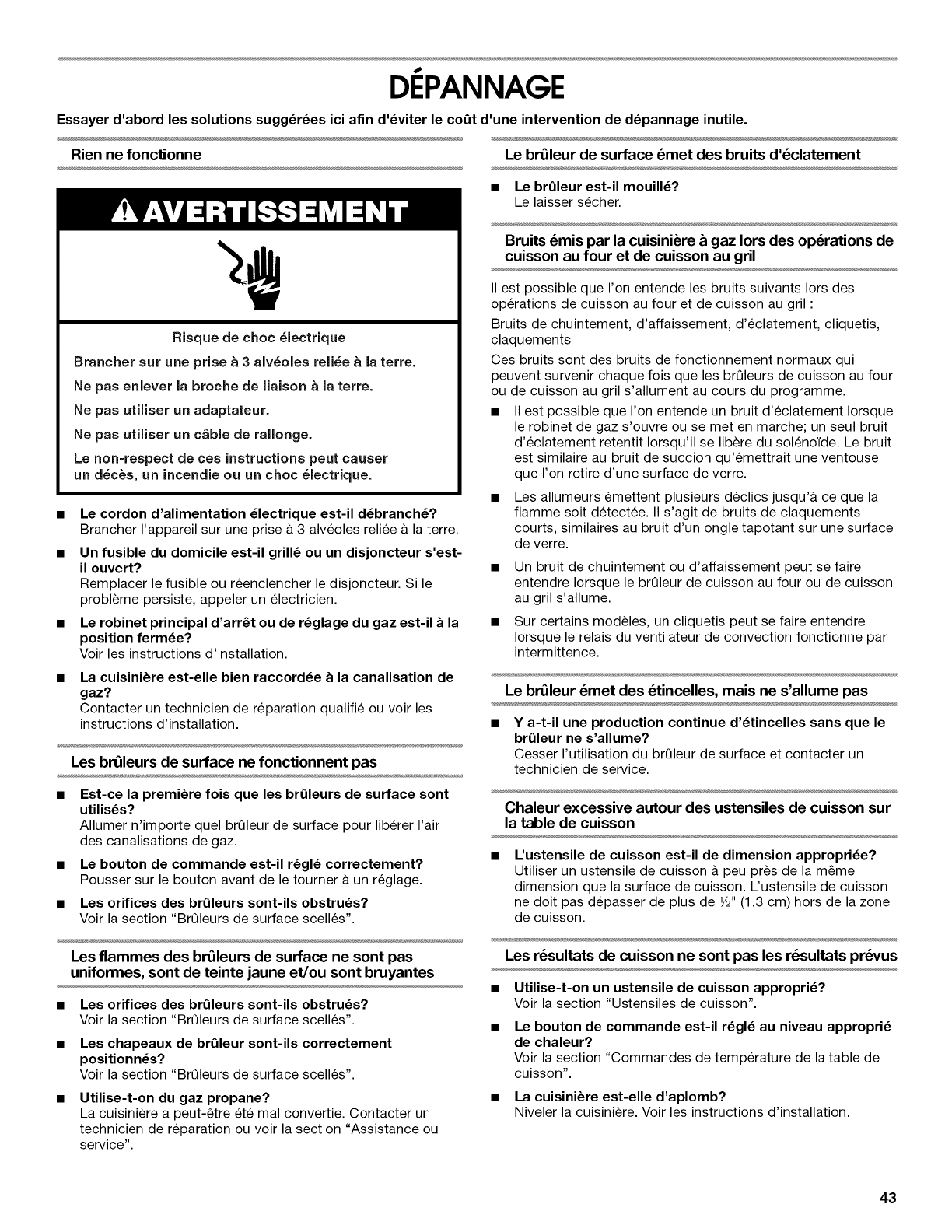 "Depannage" dans le Guide d'utilisation et d'entretien avant de nous contacter. Si vous avez besoin d'aide supplementaire, n'hesitez