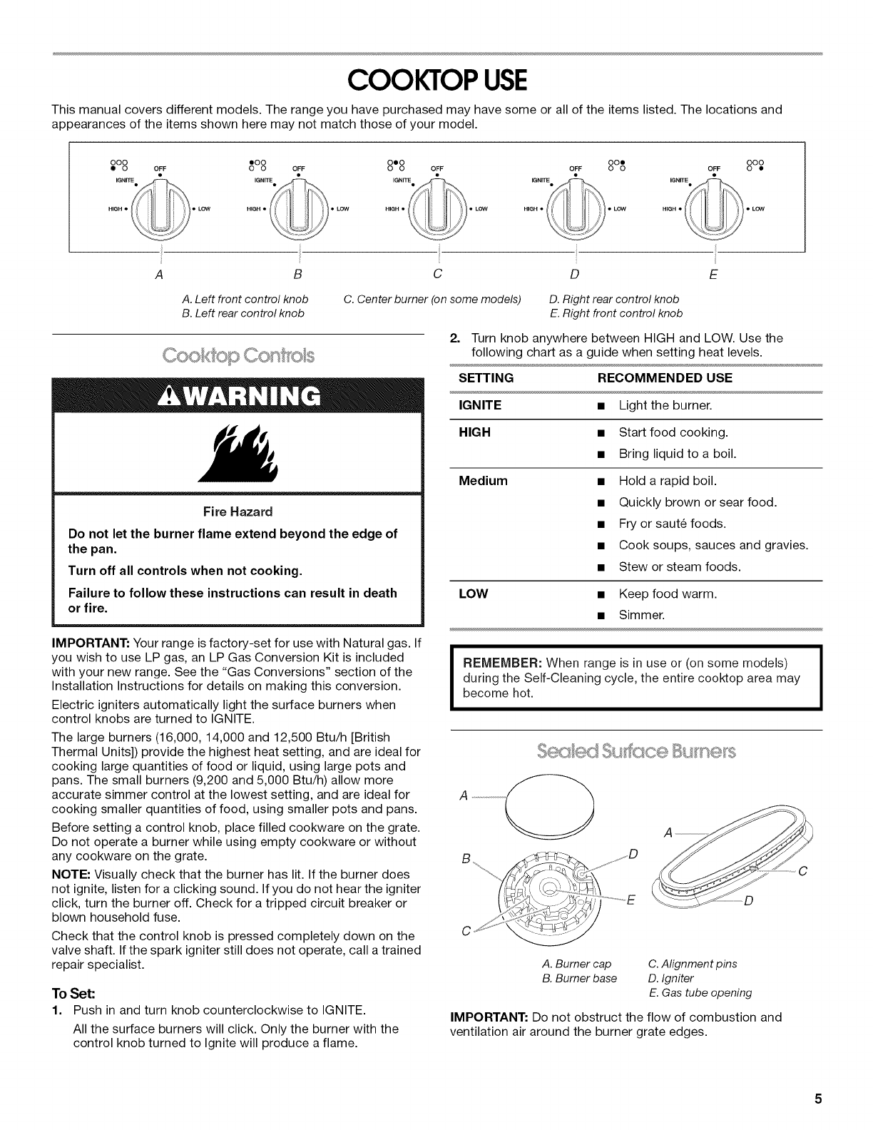 Sealed Surface Burners ............................................................... 5