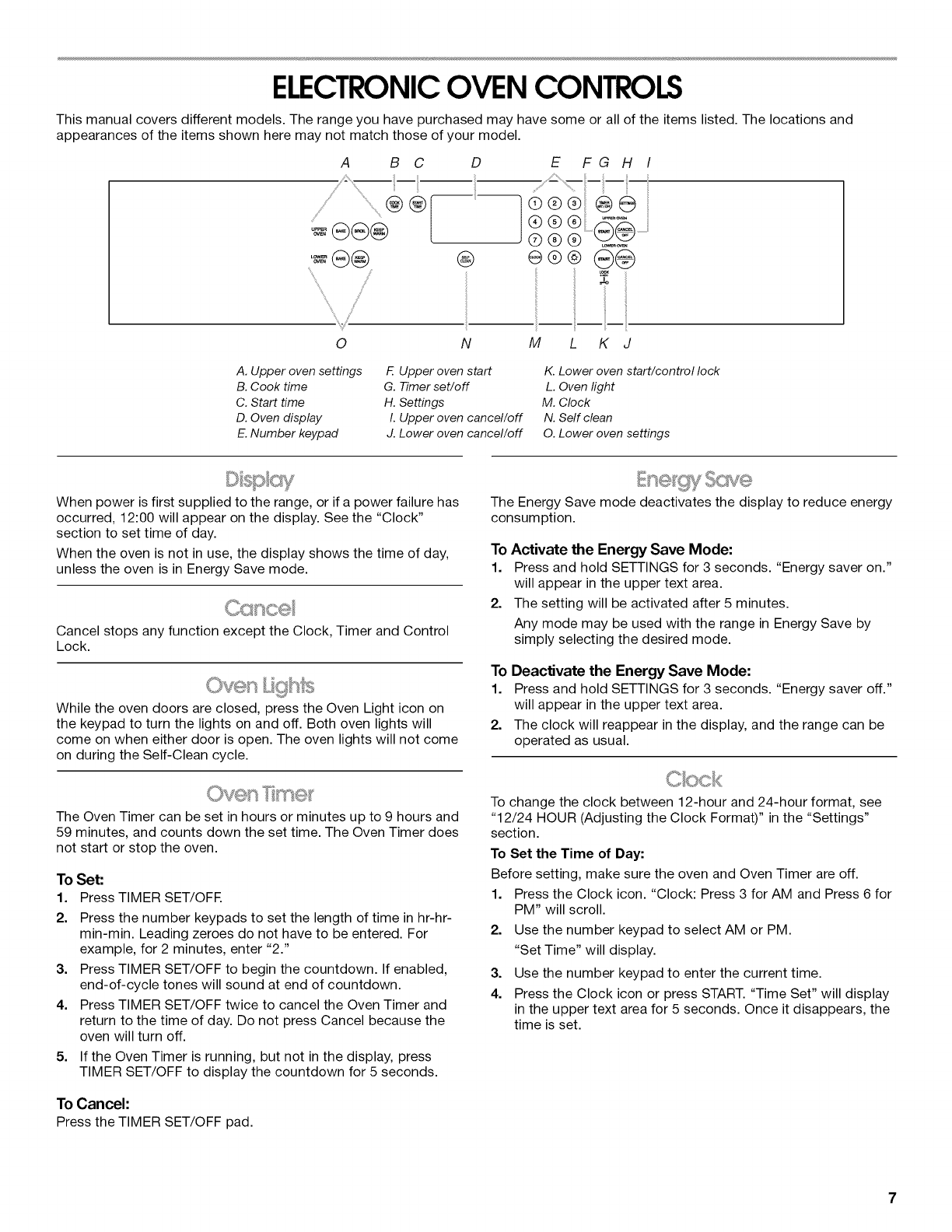 ELECTRONIC OVEN CONTROLS ................................................. 7