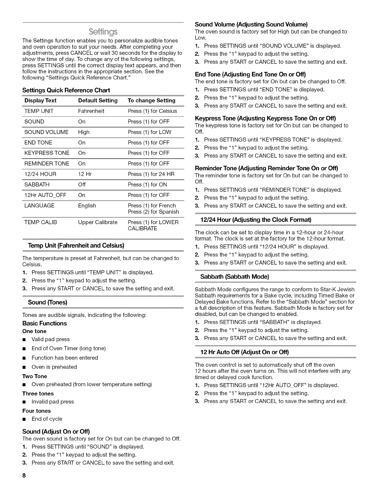Oven Timer ................................................................................... 7