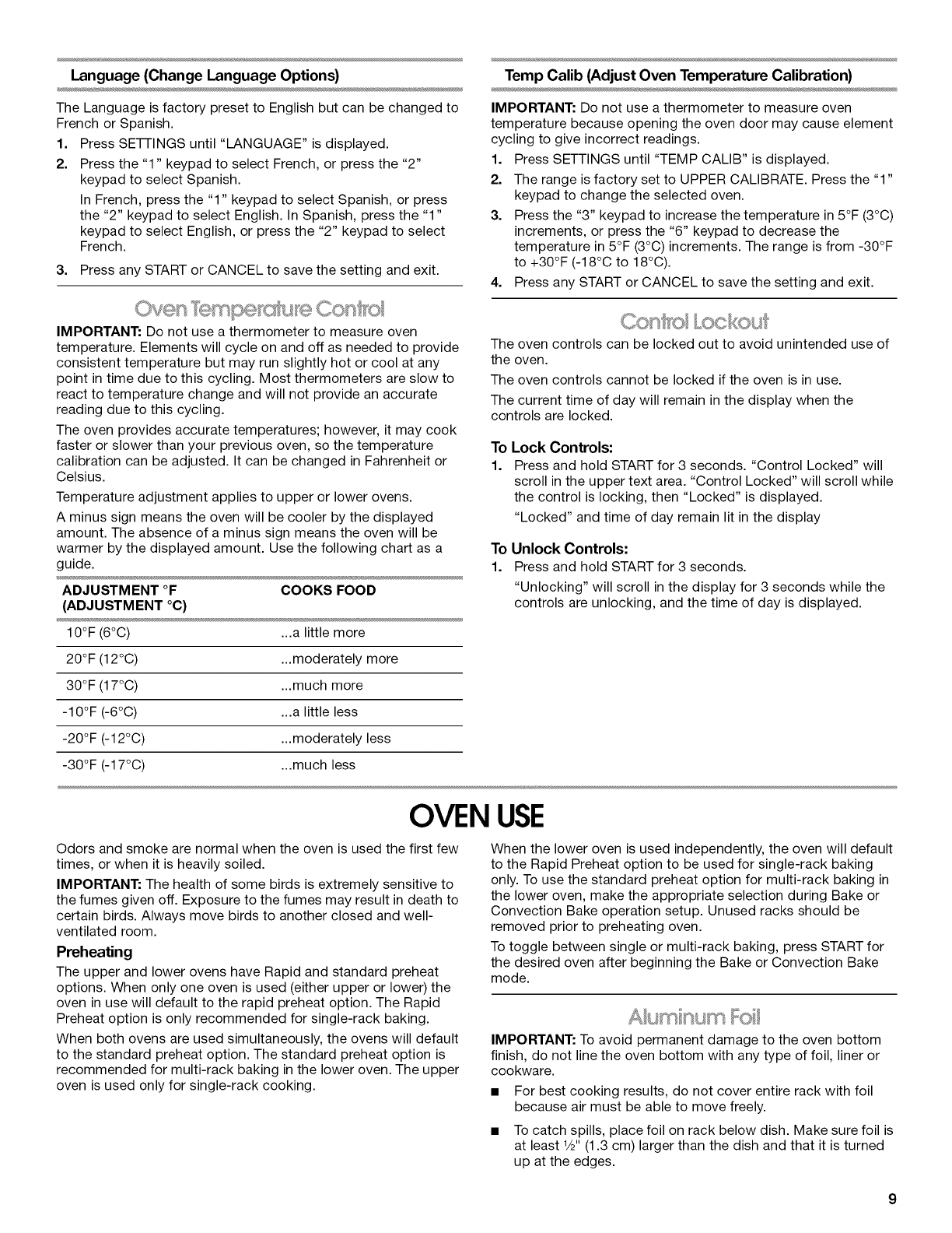 OVEN USE ....................................................................................... 9