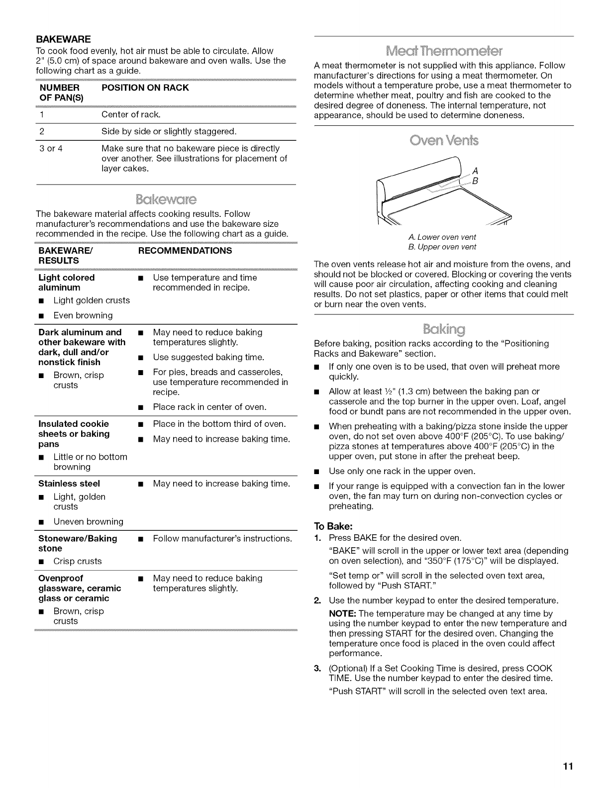 Bakeware .................................................................................... 11