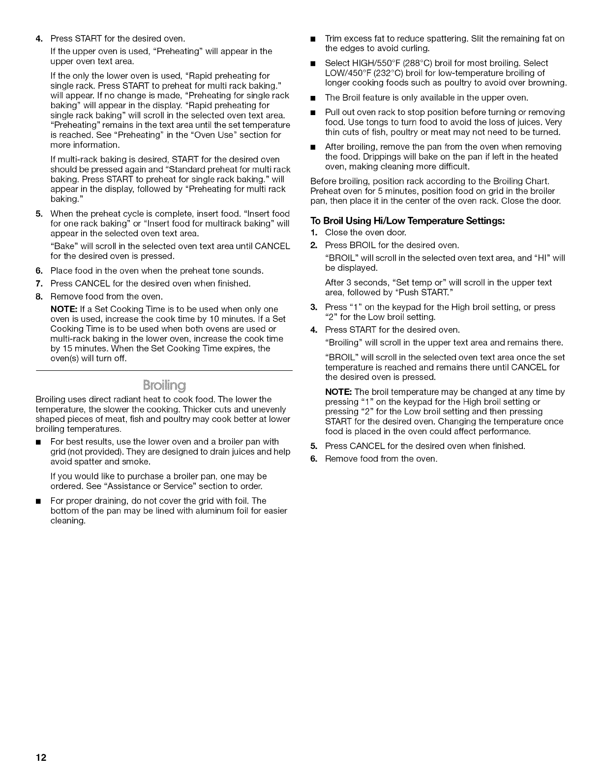 Broiling ........................................................................................ 12
