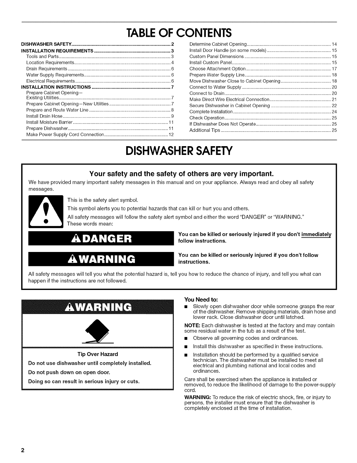DISHWASHER SAFETY ............................................................................... 2