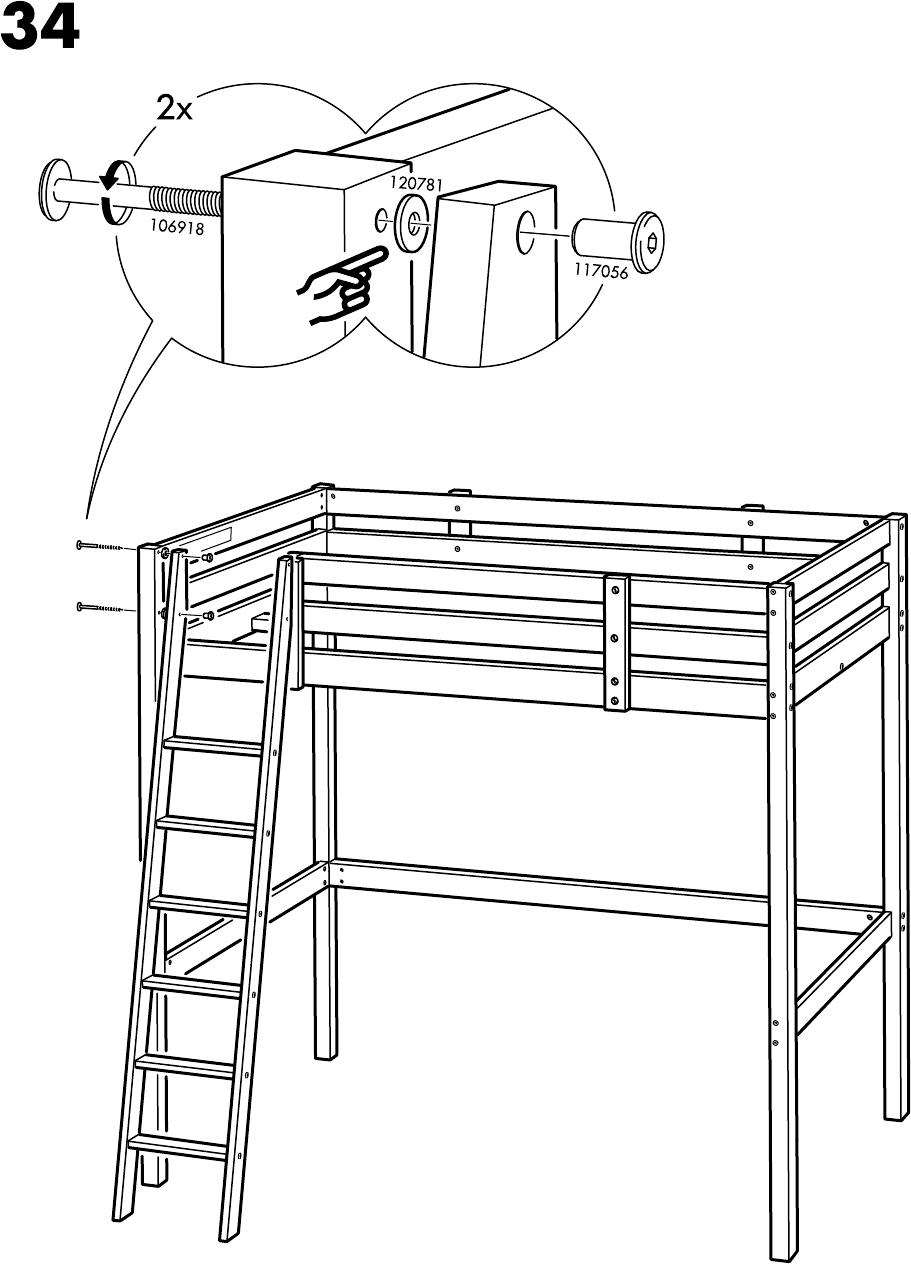 Ikea Stora Loft Bed Frame Full Double Assembly Instruction