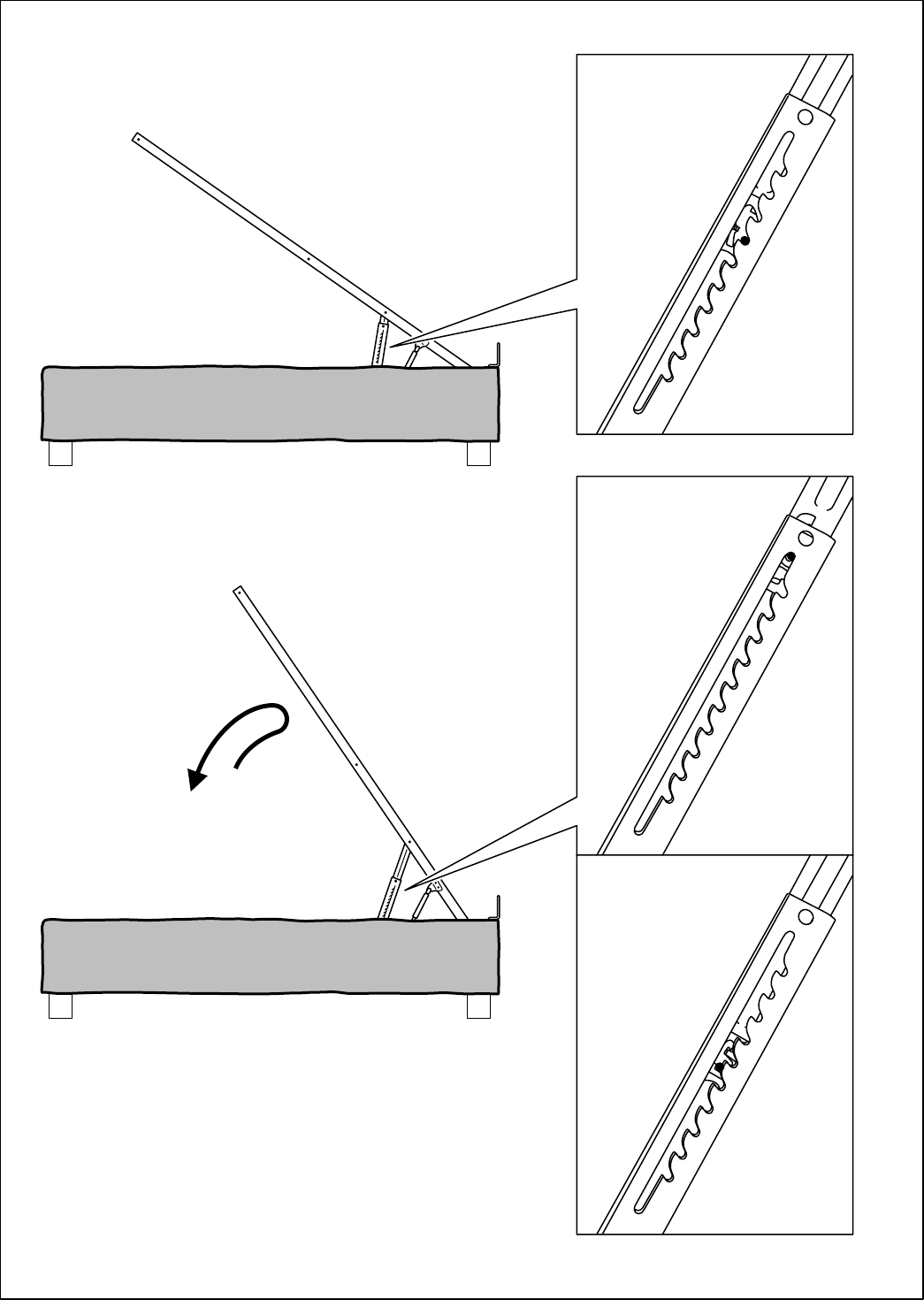 警告!ベッドベースを一番上まで持ち上げると