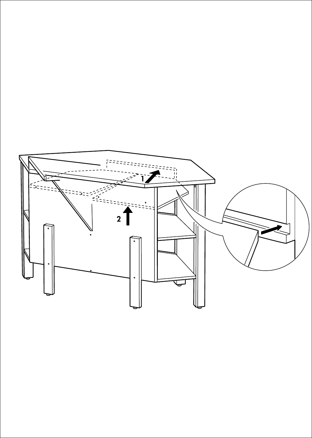 kant van het werkblad moet komen. N.B.!