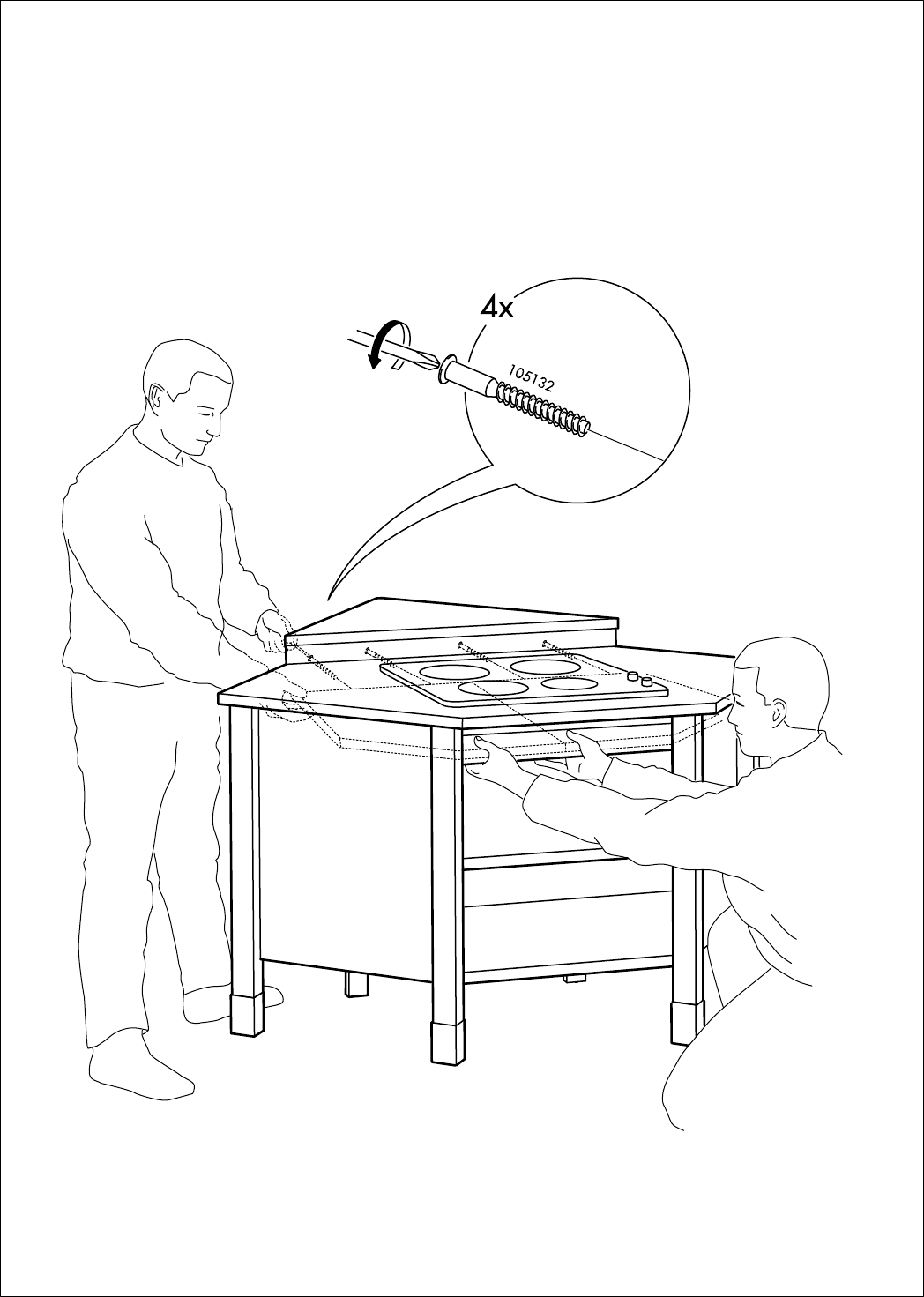 onderkast bevestigd wordt. Bedenk dat