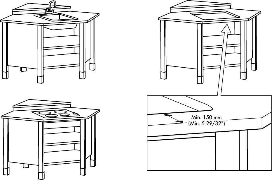 should be min. 150 mm (5 29/32”) in from