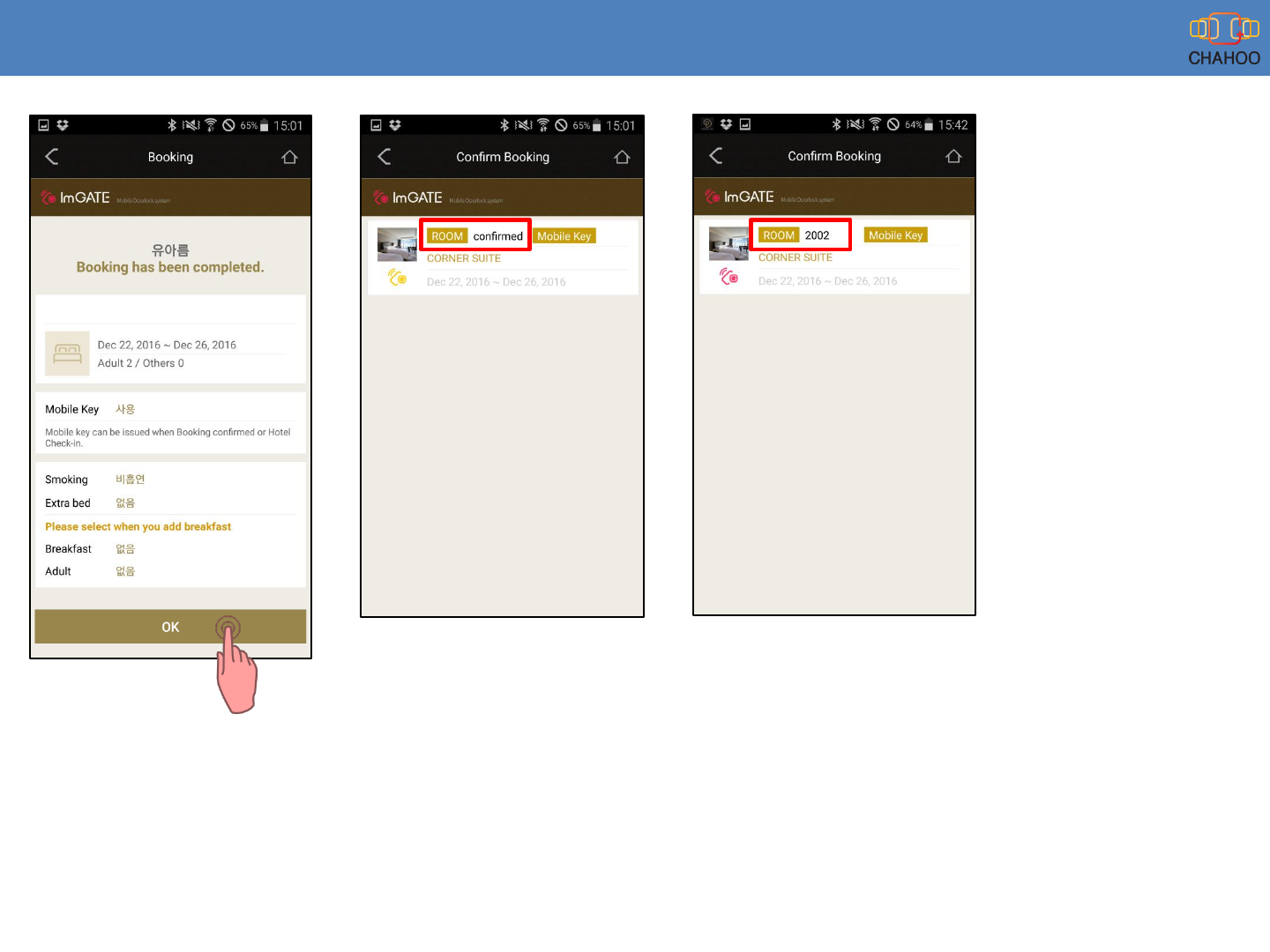 11. After Staff allocate the room, User will receive push message and can see the room status is changed as room