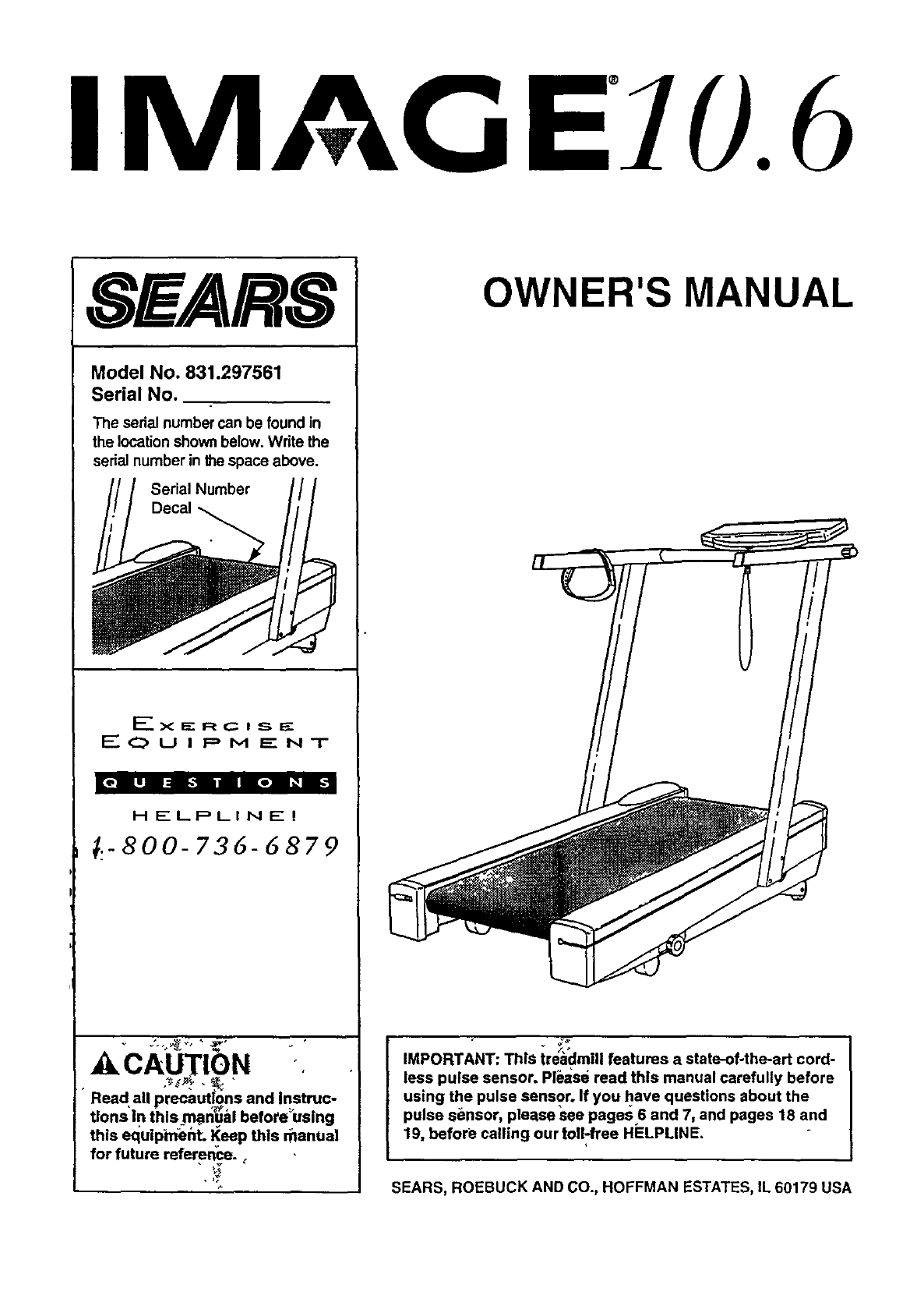 User Manual: Image 831297561 831297561 IMAGE IMAGE 10.6 TREADMILL - Manuals and Guides View the owners manual for your IMAGE IMAGE 10.6 TREADMILL #831297561. Home:Fitness Equipment Parts:Image Parts:Image IMAGE 10.6 TREADMILL Manual