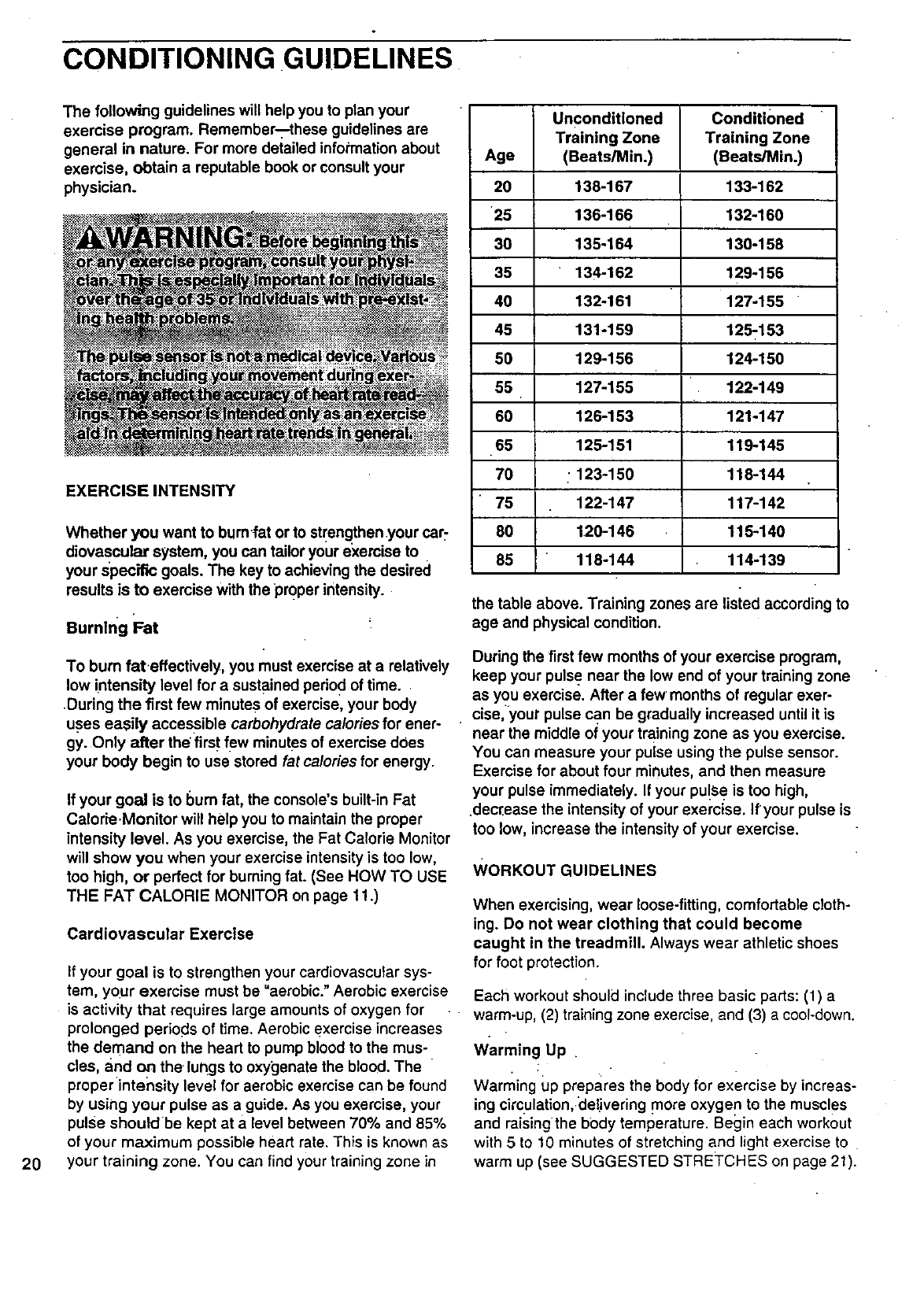 CONDITIONING GUIDELINES ....... . ........................................................ 20