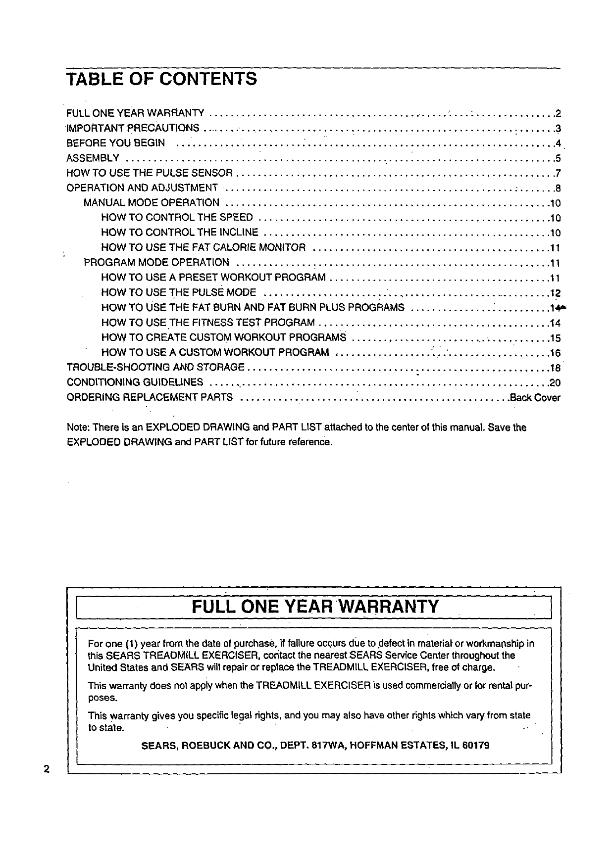 FULL ONE YEAR WARRANTY ............................................. _... :............... 2