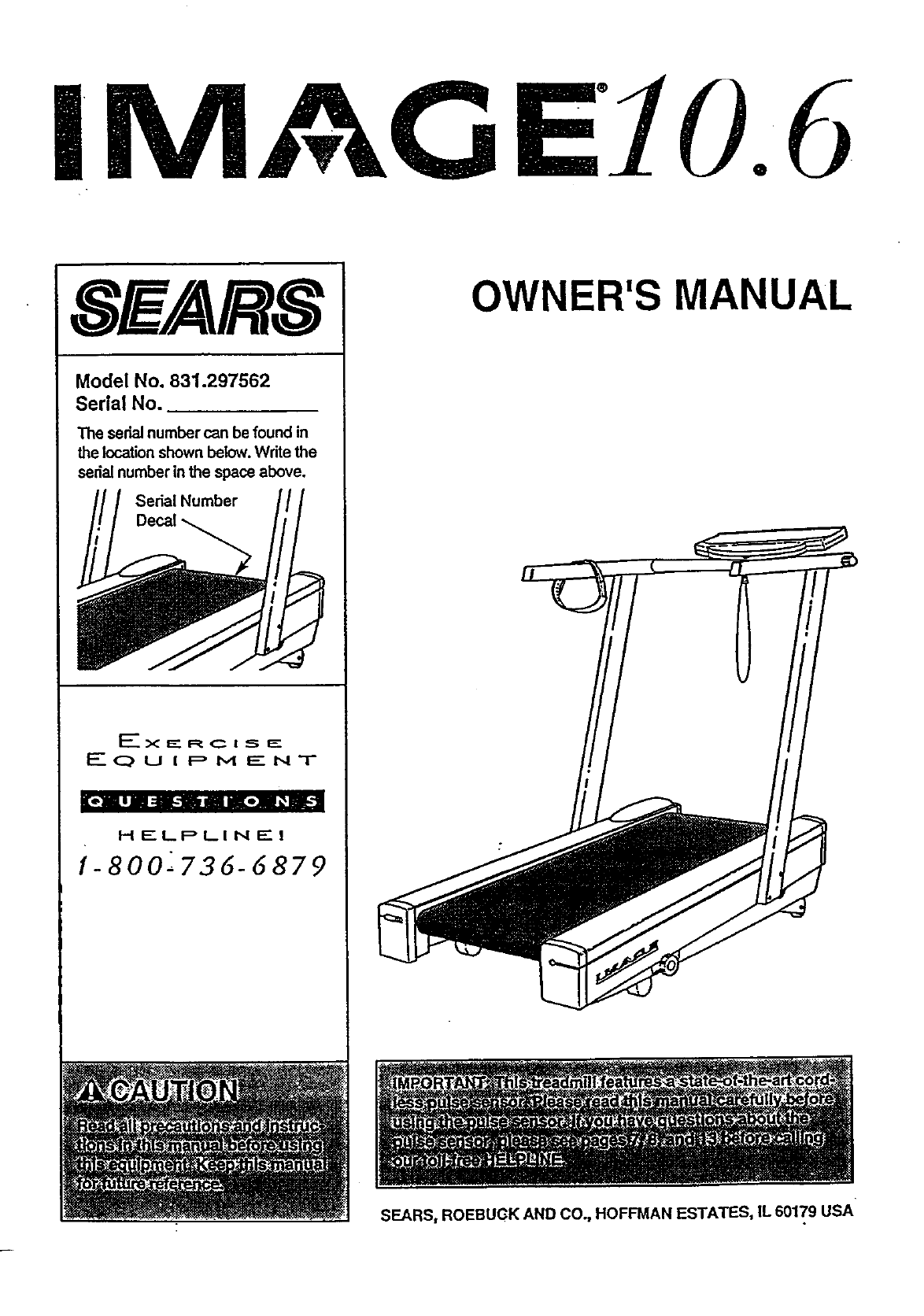 User Manual: Image 831297562 831297562 IMAGE IMAGE 10.6 TREADMILL - Manuals and Guides View the owners manual for your IMAGE IMAGE 10.6 TREADMILL #831297562. Home:Fitness Equipment Parts:Image Parts:Image IMAGE 10.6 TREADMILL Manual
