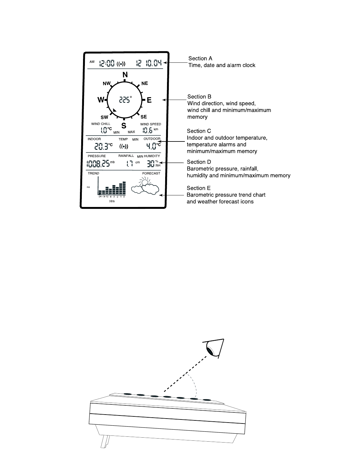 atmospheric pressure) and receives weather data from the following three outdoor sensors: