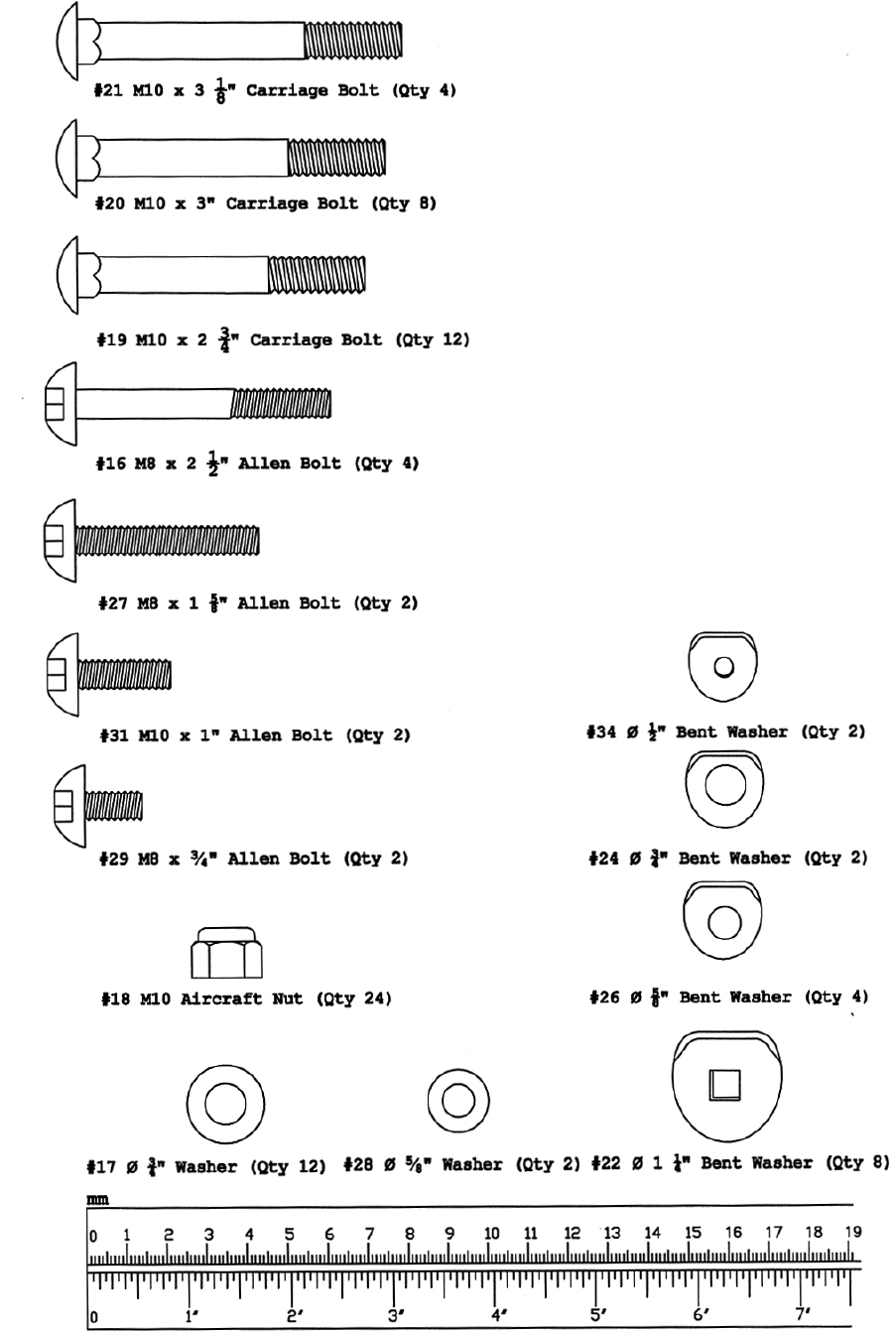 (#13), two Ø ¾” Washers (#17), and two M10 Aircraft Nuts (#18).