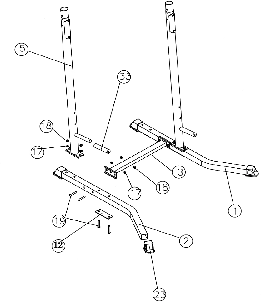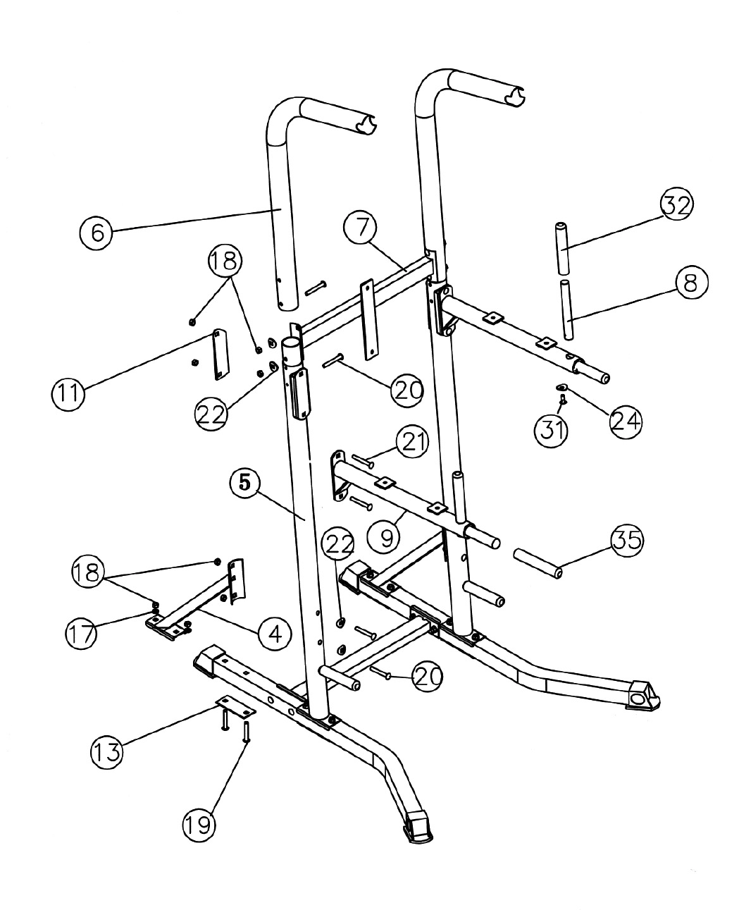 A.) Attach the Chin-up Bar (#10) to the top opening on the two Upper Upright Beams.