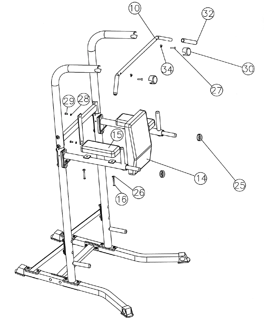 B.) Attach the two Arm Pads (#15) onto the Dip Supports. Secure each Arm Pad with two