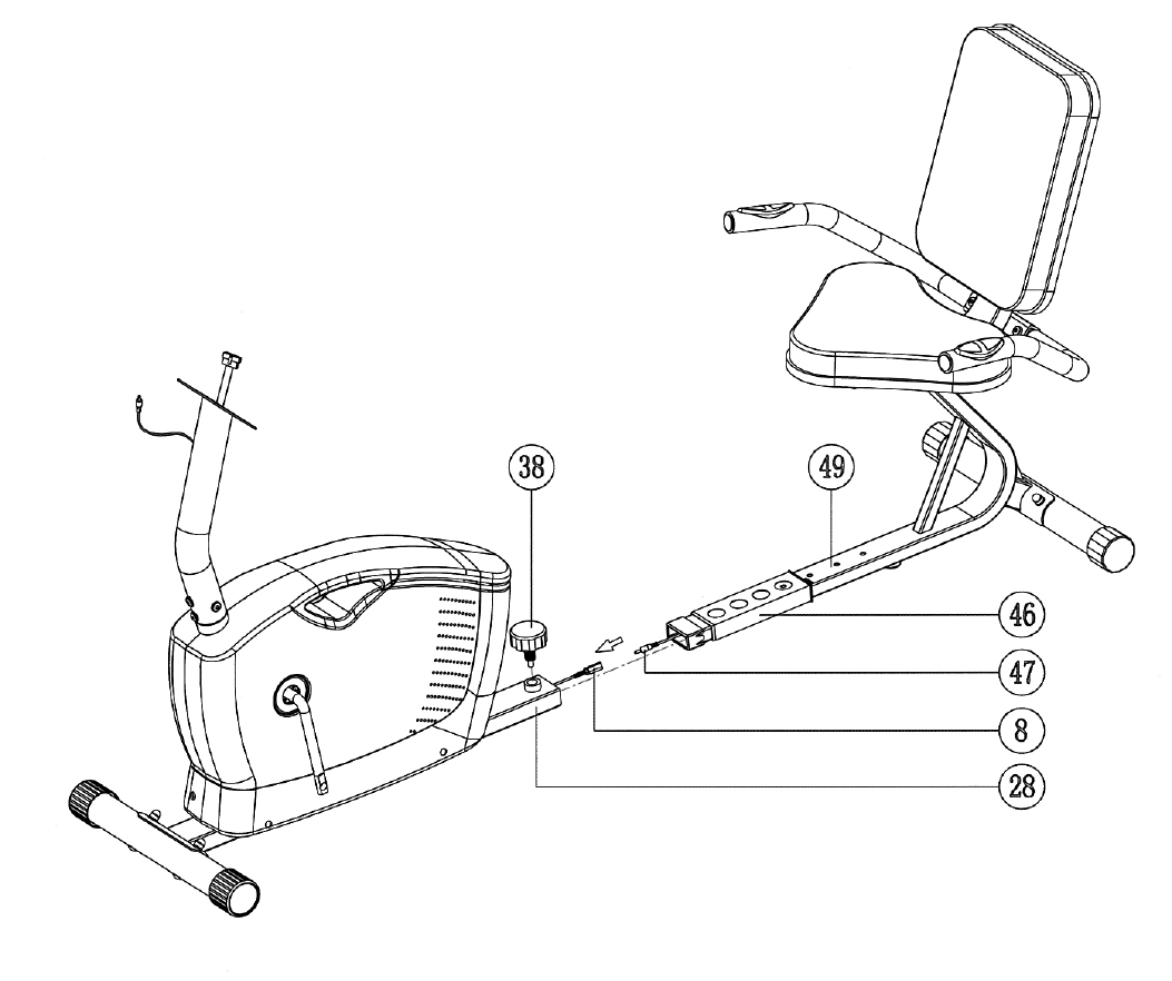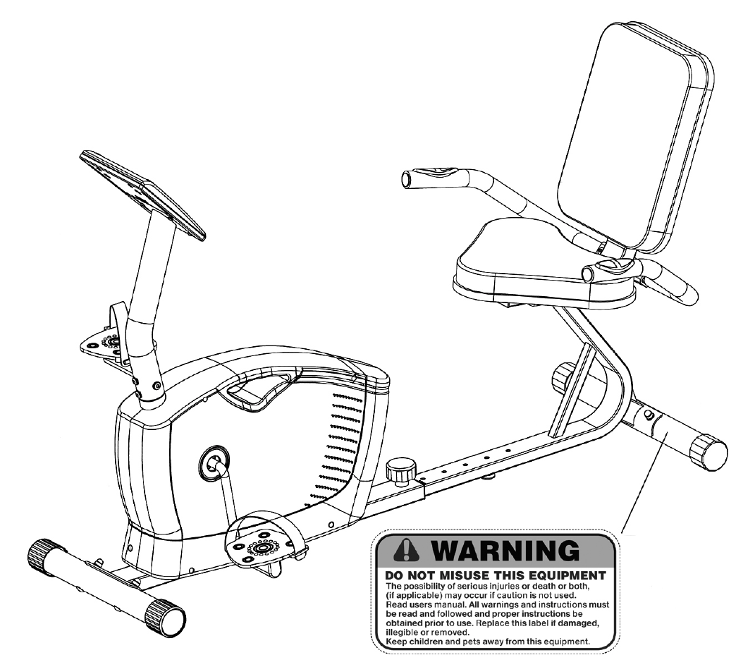 14. Inspect the exercise bike for worn or loose component prior to use. Tighten/replace any