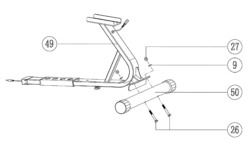 - Attach the Sliding Seat Support (#49) to Rear Stabilizer (#50).