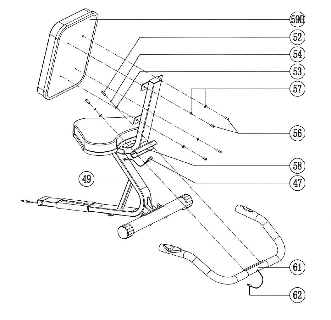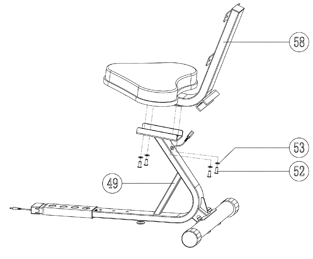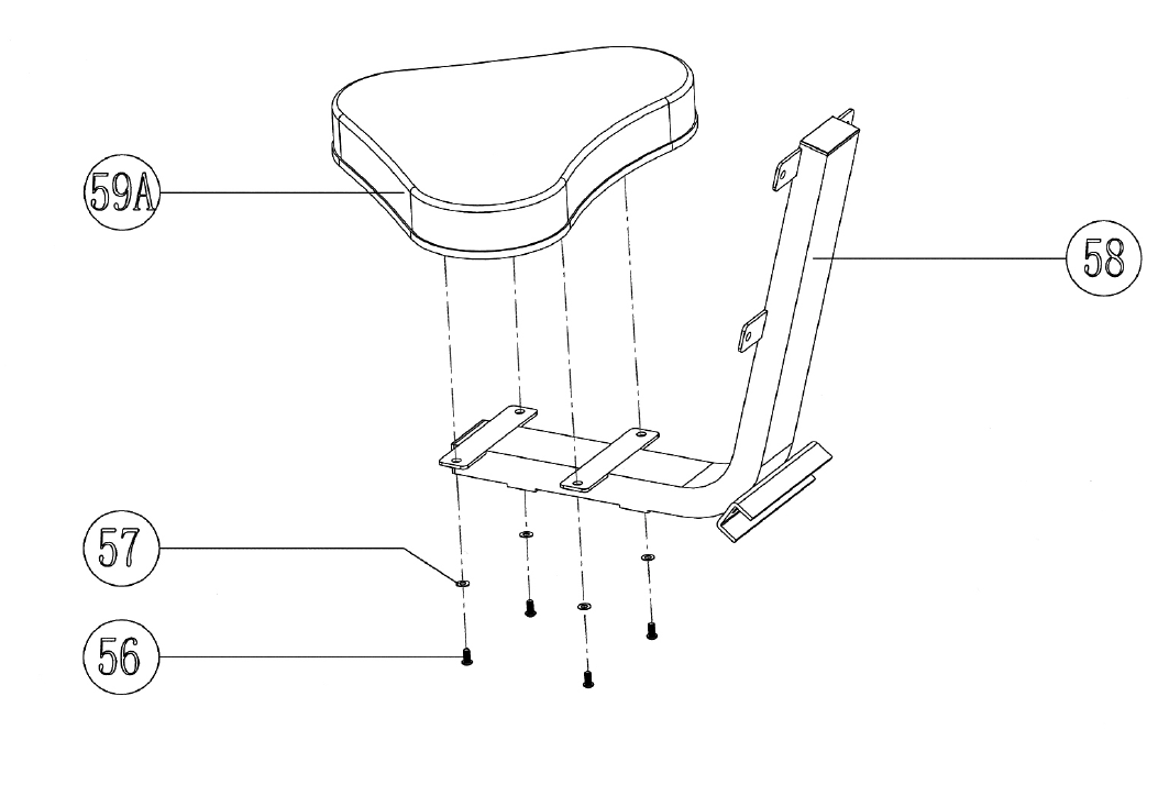 - Attach the Seat (#59A) to the Seat Support Frame (#58).